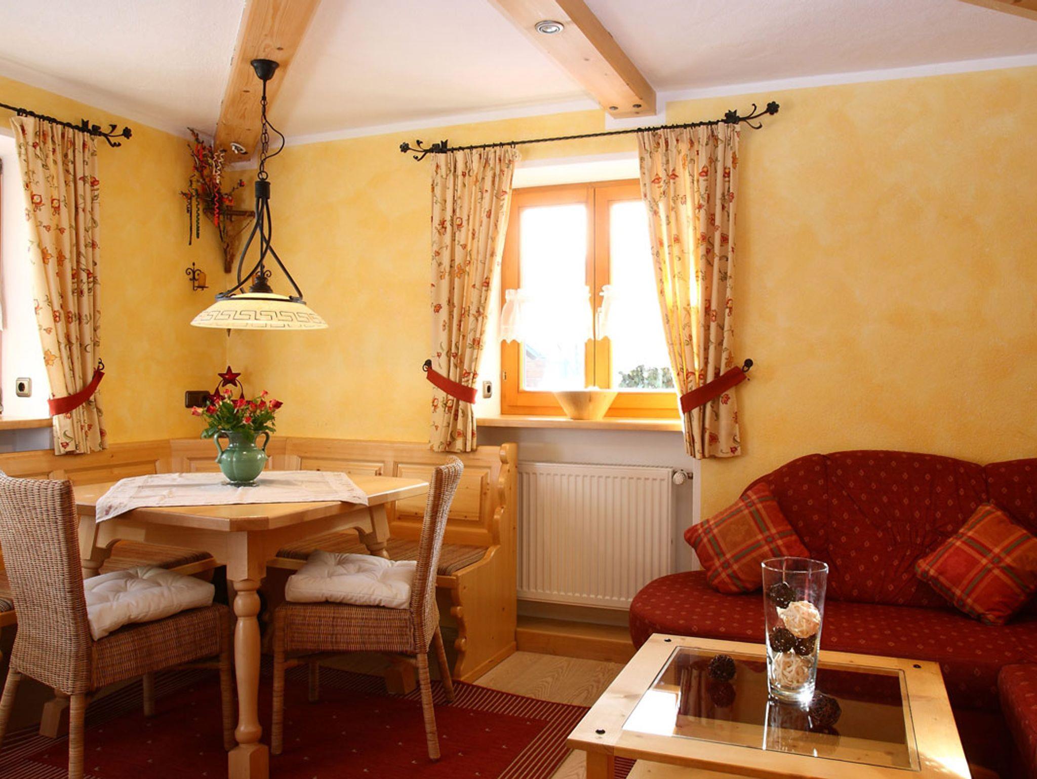 In der Wohnung haben Sie zwei Etagen:Im Erdgeschoss befinden sich die neue exklusive Küche (Ceranherd, Geschirrspüler, Kühlschrank) mit Essbereich, die Wohnstube mit Sitzecke und gemütlichen Schwedenofen und ein WC.Im Obergeschoss sind zwei getrennte Schlafzimmer und das moderne Badezimmer mit Badewanne und WC vorhanden. Im ersten Schlafzimmer befindet sich ein Doppelbett, im zweiten Schlafzimmer ein Stockbett. Das Stockbett ist für Kinder ideal geeignet. Die Ferienwohnung verfügt über eine gute Baby- und Kinderausstattung. Ein Reisebett und ein Hochstuhl stehen Ihnen zur Verfügung.Die Wohnung besitzt einen eigenen Balkon und eine Terrasse, wo Sie die herrliche Aussicht auf unsere Berchtesgadener Berge genießen können.