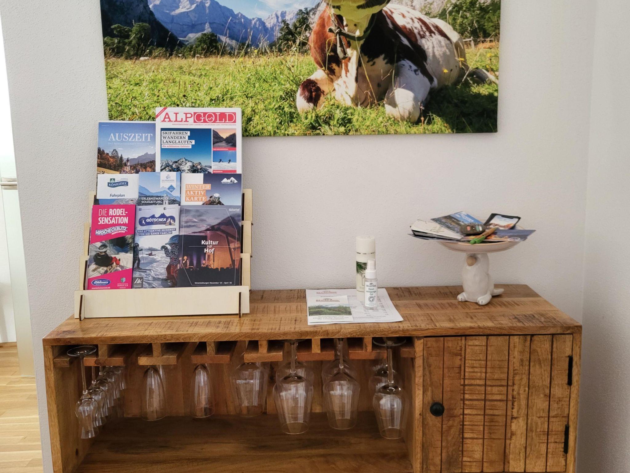 Unsere Wohnung hat eine voll ausgestattete Küche mit Herd, Backofen, Kühlschrank, Kaffeemaschine etc. Im großzügigen & gemütlichen Küchen- / Wohn- / Essbereich werden Sie sich wie zu Hause fühlen. Falls etwas fehlen sollte, lassen Sie es uns wissen. Ein Schlafzimmer mit einem Boxspringbett ( 180 x 200 ) sowie eine Wohnzimmercouch, die mit wenigen Handgriffen zum Schlafsofa umgebaut werden kann, bietet zusätzlich ausreichend Platz für 2 Erwachsene. Im Badezimmer steht Ihnen eine Badewanne und eine Dusche zur Verfügung. Im Sommer können Sie die Terrasse mit Watzmannblick und Sonnenmarkise gerne nutzen!