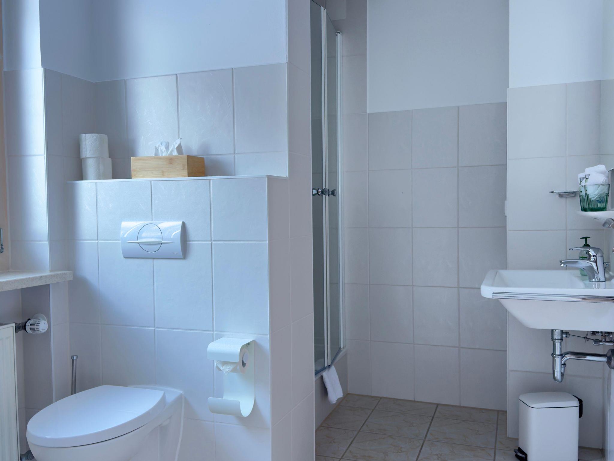 Die Badezimmer haben alle eine Dusche. Das New Eagle Doppelzimmer und unser Hochthron hat zusätzlich je eine Badewanne.