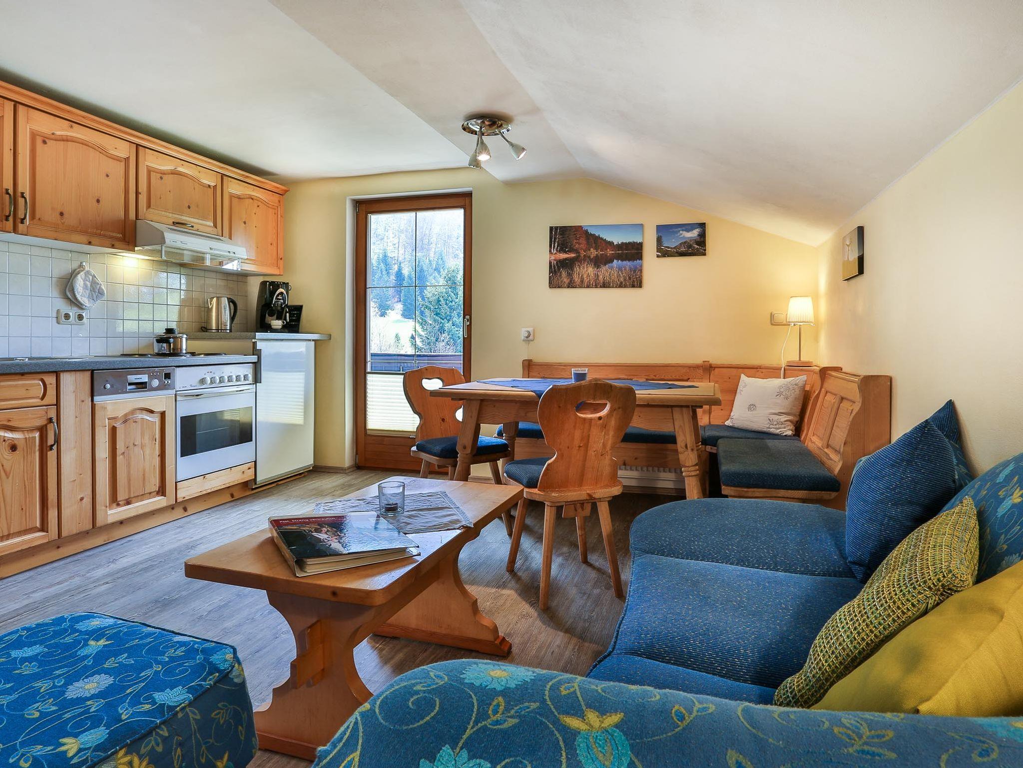 Die Ferienwohnung ist im ländlichen Stil eingerichtet und befindet sich im Dachgeschoß. Die Wohnküche verfügt über ein Miele-Elektroherd (Ceranfeld, Backrohr), Spülmaschine, Kühlschrank mit Gefrierfach, Kaffeemaschine plus Nespresso-Maschine und Wasserkocher. Zum Frühstücken mit herrlicher Aussicht laden unsere zwei großen Sonnenbalkone ein! Bitte haben Sie Verständnis, dass Sie zu uns keine Haustiere mitbringen können. Raucher sind bei uns willkommen, wenn Sie außerhalb der Räumlichkeiten oder auf dem Balkon rauchen. Im Haupthaus befinden sich Waschmaschine und Trockner zur gemeinsamen Benutzung für alle Gäste ( gegen Gebühr ) Natürlich können Sie auch die überdachte Terrasse nutzen, ebenso steht Ihnen der grße Grill zur Verfügung.