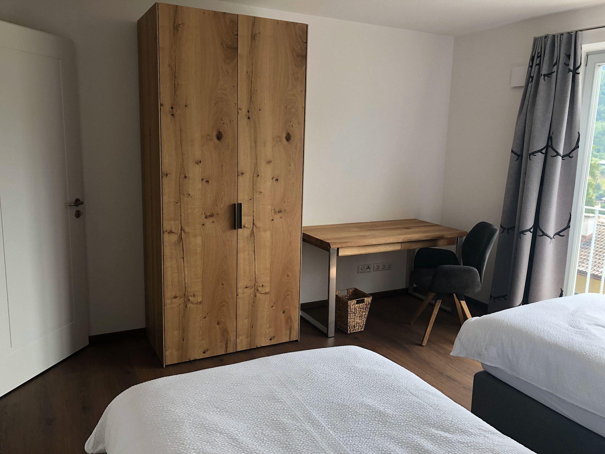 Die Wohnungen sind ca. 100qm groß und für bis zu 4 Personen ausgelegt. Erdgeschoss: Ein Schlafzimmer hat ein großes Boxspring-Doppelbett (2x2m). Im zweiten Schlafzimmer gleicher Größe stehen zwei Boxspring-Einzelbetten und ein Schreibtisch. Im oberen Stockwerk ist der sehr geräumige Wohn- und Essbereich, die offene Küche und die Süd-Loggia. Obwohl das Haus an einem steilen Hang steht ist die Zuwegung vom Parkplatz zur Wohnungshaustüre stufenlos und ohne Steigung. Innerhalb der Wohnung verbindet eine Treppe die beiden Stockwerke. Von allen Zimmern haben Sie einen traumhaften Bergblick. Im ersten Stock naturgemäß noch etwas erhabener als im Erdgeschoss. Das Haus (Erstbezug August 2019) liegt ruhig am Ende einer Sackgasse, aber dennoch zentral in Berchtesgaden. Der Soleleitungsweg, einen ebener Fußweg/Wanderweg über den früher die Sole vom Salzbergwerk zur Saline nach Bad Reichenhall geleitet wurde, führt direkt am Haus vorbei durch den Wald und über Holzstege am Fels. Bergab sind es ins Zentrum zu Fuß nur 5-10 Minuten. Hier finden Sie mehrere Bäcker, Restaurants und alle Einkaufsmöglichkeiten. Es gibt ein abschließbares Radl- und Skihaus, falls Sie Ihre Sportgeräte mitbringen möchten. Unsere beiden Ferienwohnungen haben jeweils einen eigenen Eingang. Man teilt sich keine Gemeinschaftsräume.