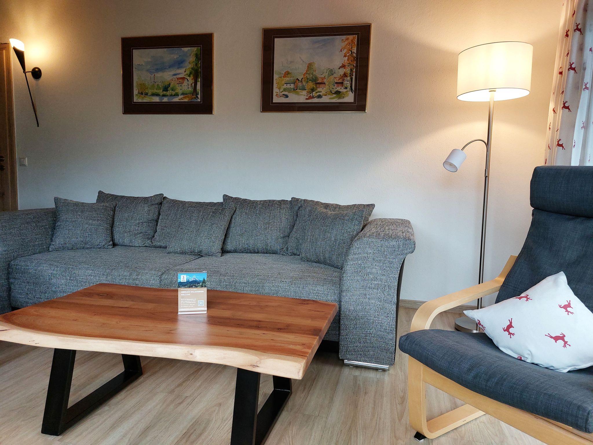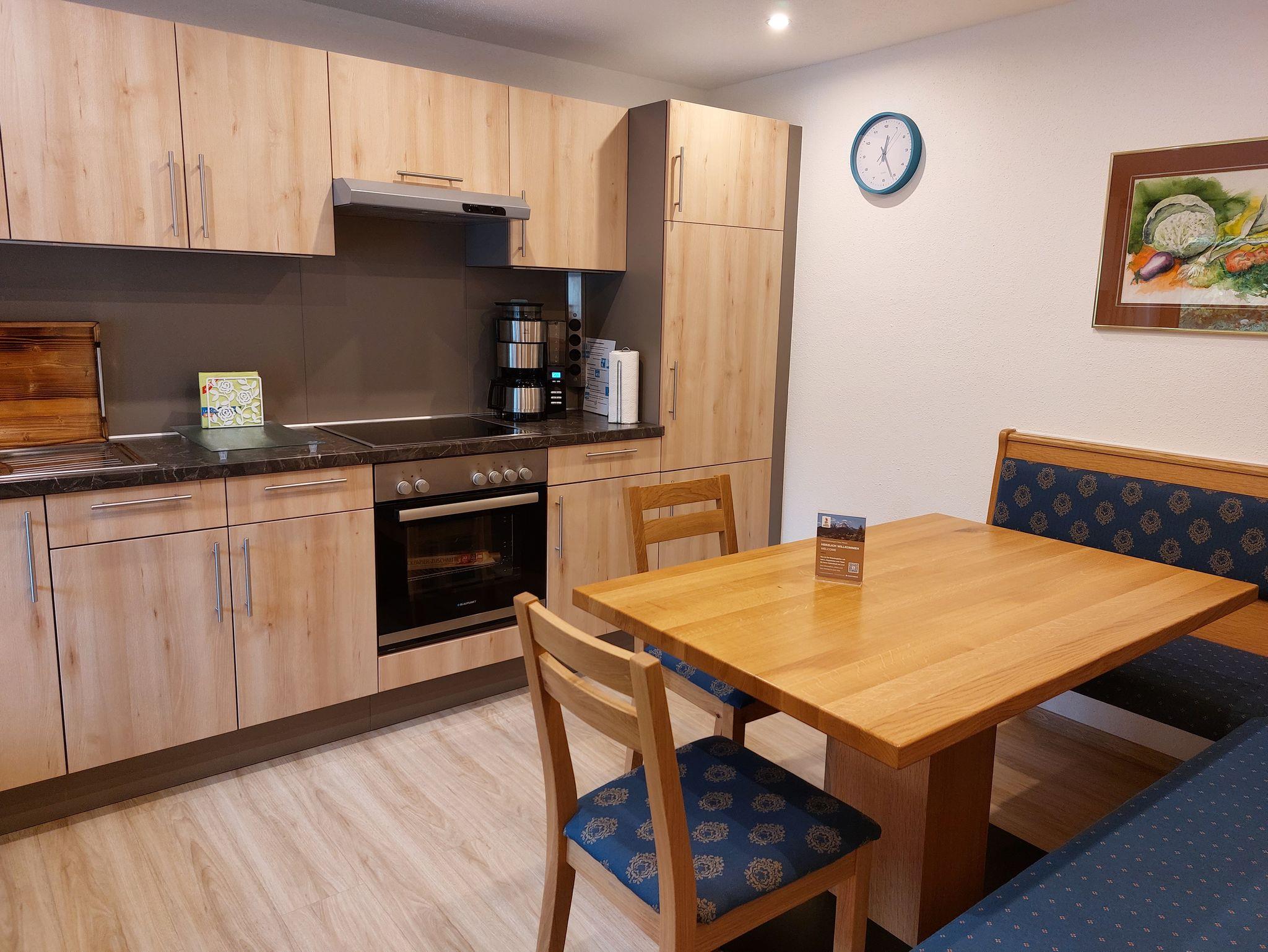 Diese komfortable Ferienwohnung verfügt über eine große überdachte Terrasse. Das angenehme Ambiente der Ferienwohnung lädt dazu ein den Aufenthalt zu genießen und sich richtig wohl zu fühlen. Die hochwertige Ausstattung bestehend aus Koch- und Essgeschirr, Besteck, Gläser, Bettwäsche und Handtücher sind in ausreichender Zahl vorhanden. Kaffeemaschine (Filter), Wasserkocher, Eierkocher, Toaster und Putzutensilien runden das Angebot ab. Babybett und Hochstuhl auf Anfrage möglich. Nichtraucherwohnung; Rauchen am Balkon gestatett. Keine Haustiere möglich.