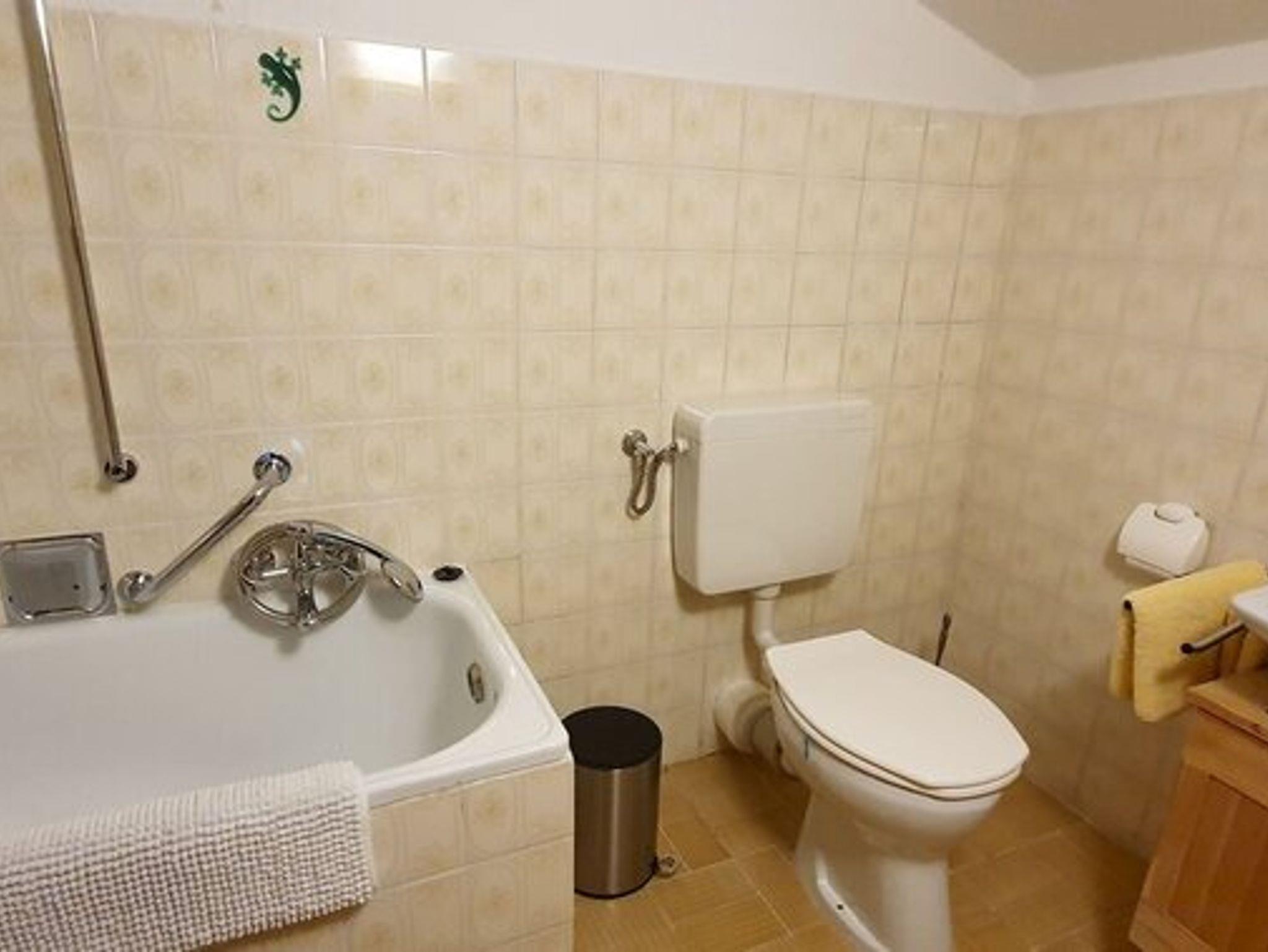 Unsere kleine Mansardenwohnung, bestehend aus 2 Betten und Nachtkästchen in einer Nische, Eckbank, Kleiderschrank, Kommode mit SAT-TV.Fenster mit Blick auf den Garten und Natur.Kleine Kochnische mit Spüle, 2 Herdplatten, Kühlschrank mit Gefrierfach und Kaffemaschine. Badezimmer mit Sitzbadewanne, Waschbecken und WC.Die Wohnung ist ca. 25 m² groß und bietet Platz für 2 Personen.