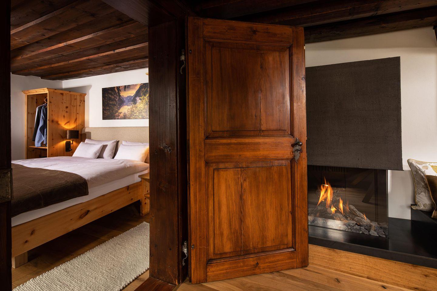 Geschlafen wird in einem für seine besonderen Schlafeigenschaften bekannten Zirbenholz-Schlafzimmer. Das gemütliche Doppelbett mit Lodenkopfteil und Premium-Matratzen sorgen für erholsame Nächte. Ein Flachbild-TV ist ebenso vorhanden wie Verdunkelungsvorhänge um ungestört ausschlafen zu können.