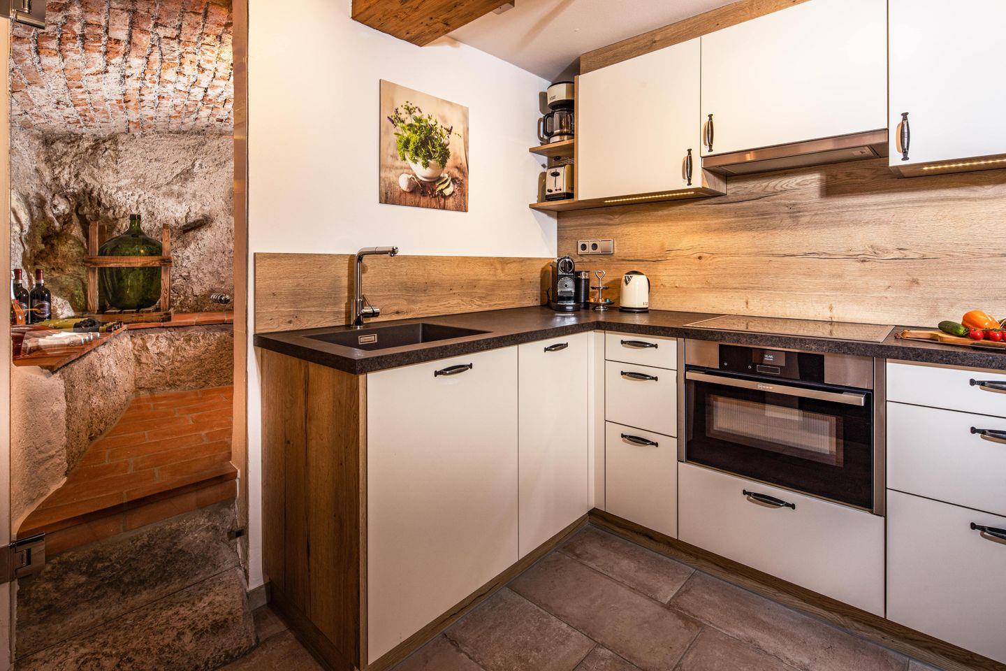 Die Einbauküche ist bestens ausgestattet mit allem was in eine moderne Küche gehört. So können Sie Ihren Kaffee entweder in einer Nespresso- oder einer Filterkaffeemaschine zubereiten, und auch sonst sind alle wichtigen Geräte und Zubehör vorhanden. Ein kleiner Bistrotisch am großen Küchenfenster lädt dazu ein einen gemütlichen Espresso zu genießen.