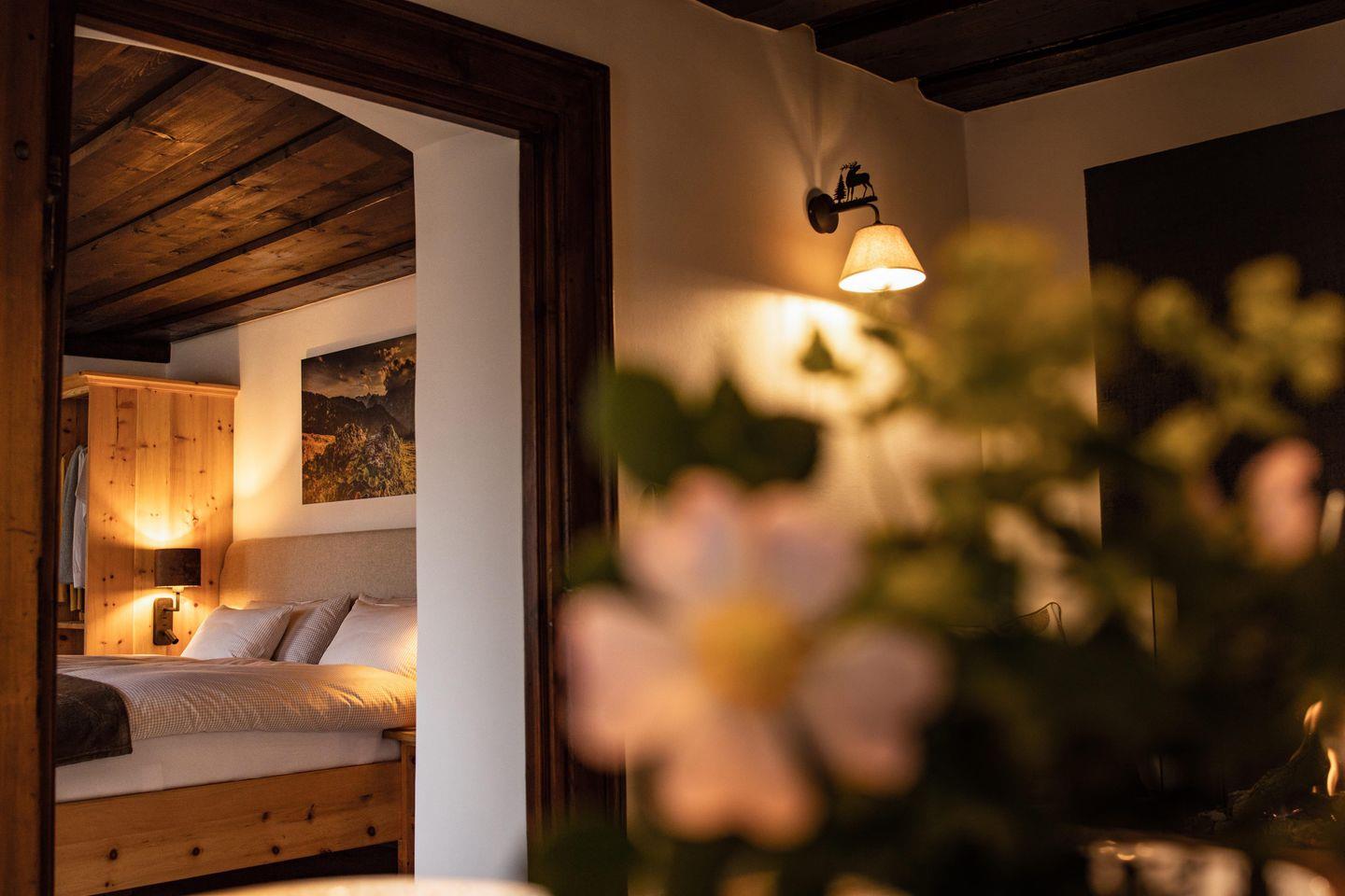 Geschlafen wird in einem für seine besonderen Schlafeigenschaften bekannten Zirbenholz-Schlafzimmer. Das gemütliche Doppelbett mit Lodenkopfteil und Premium-Matratzen sorgen für erholsame Nächte. Ein Flachbild-TV ist ebenso vorhanden wie Verdunkelungsvorhänge um ungestört ausschlafen zu können.