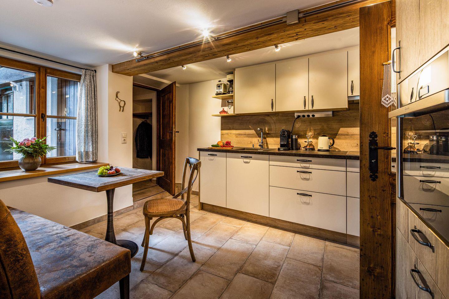 Die Einbauküche ist bestens ausgestattet mit allem was in eine moderne Küche gehört. So können Sie Ihren Kaffee entweder in einer Nespresso- oder einer Filterkaffeemaschine zubereiten, und auch sonst sind alle wichtigen Geräte und Zubehör vorhanden. Ein kleiner Bistrotisch am großen Küchenfenster lädt dazu ein einen gemütlichen Espresso zu genießen.