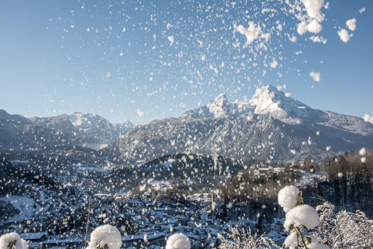 Von der überdachten Terrasse und vom zur Wohnung gehörenden Gartenbereich genießen Sie den Blick auf den Jenner und das Hohe Brett; der Watzmann zeigt sich seitlich als zusätzliches Highlight.