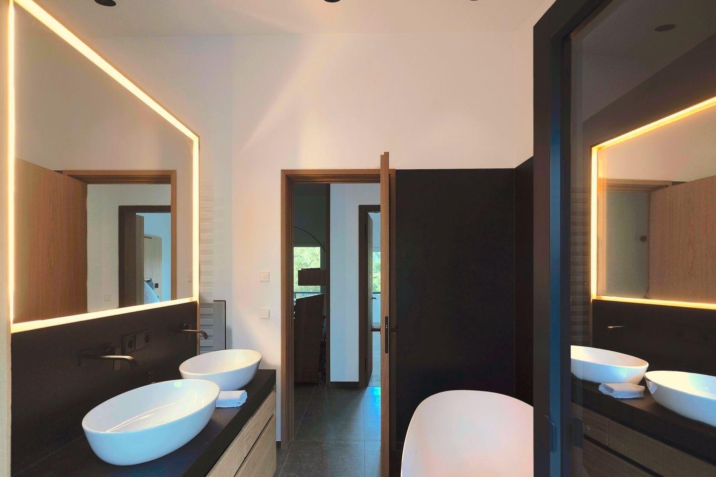 Zur Ferienwohnung gehören eine finnische Sauna mit Terrassenzugang, Innen- und Außendusche, Walk-in-Regenduschen, Bidet sowie eine freistehende Badewanne. Überlange Kingsize-Betten, Highspeed-WLAN, vier Smart-TVs, Top-Hi-Fi, Spiele, Bücher und zwei Arbeitsplätze sorgen für hohen Komfort. Ski- und Bike-Abstellräume, Carport und zusätzlicher Stellplatz. Eine E-Auto-Ladestation ist nur wenige Gehminuten entfernt.