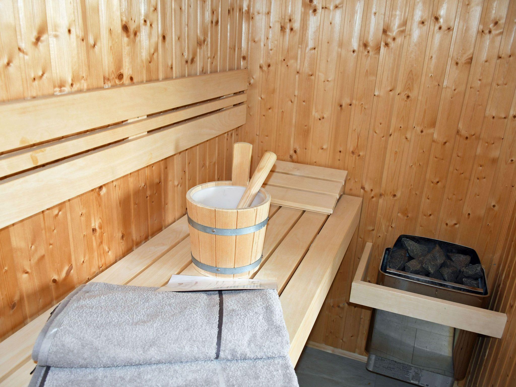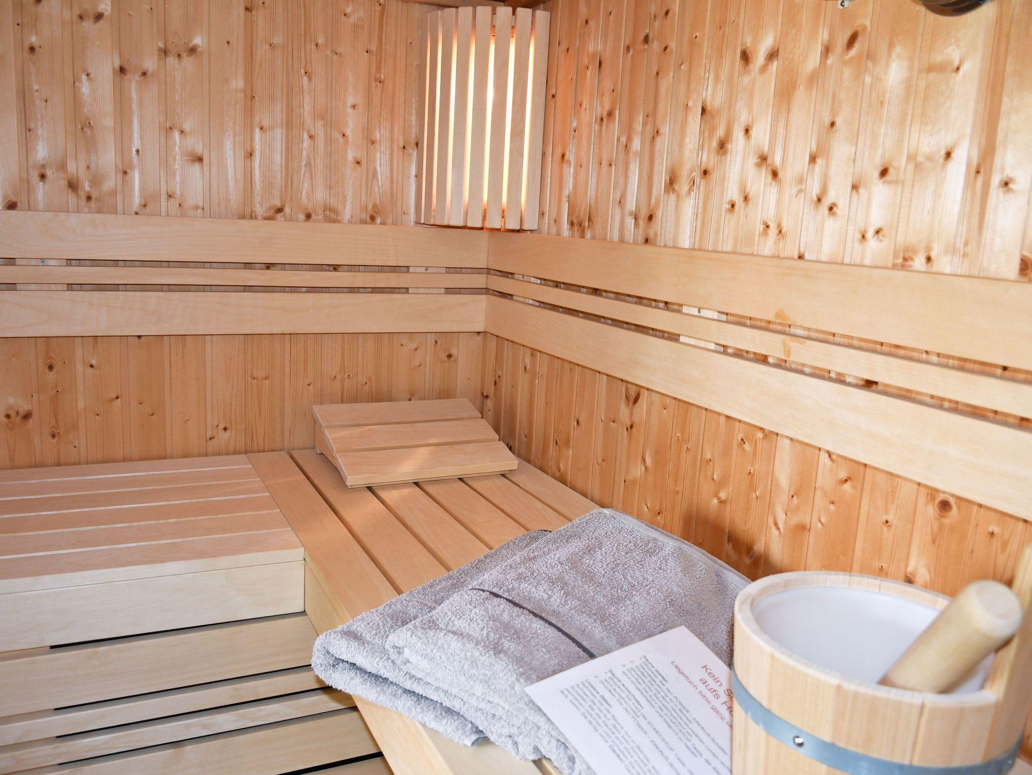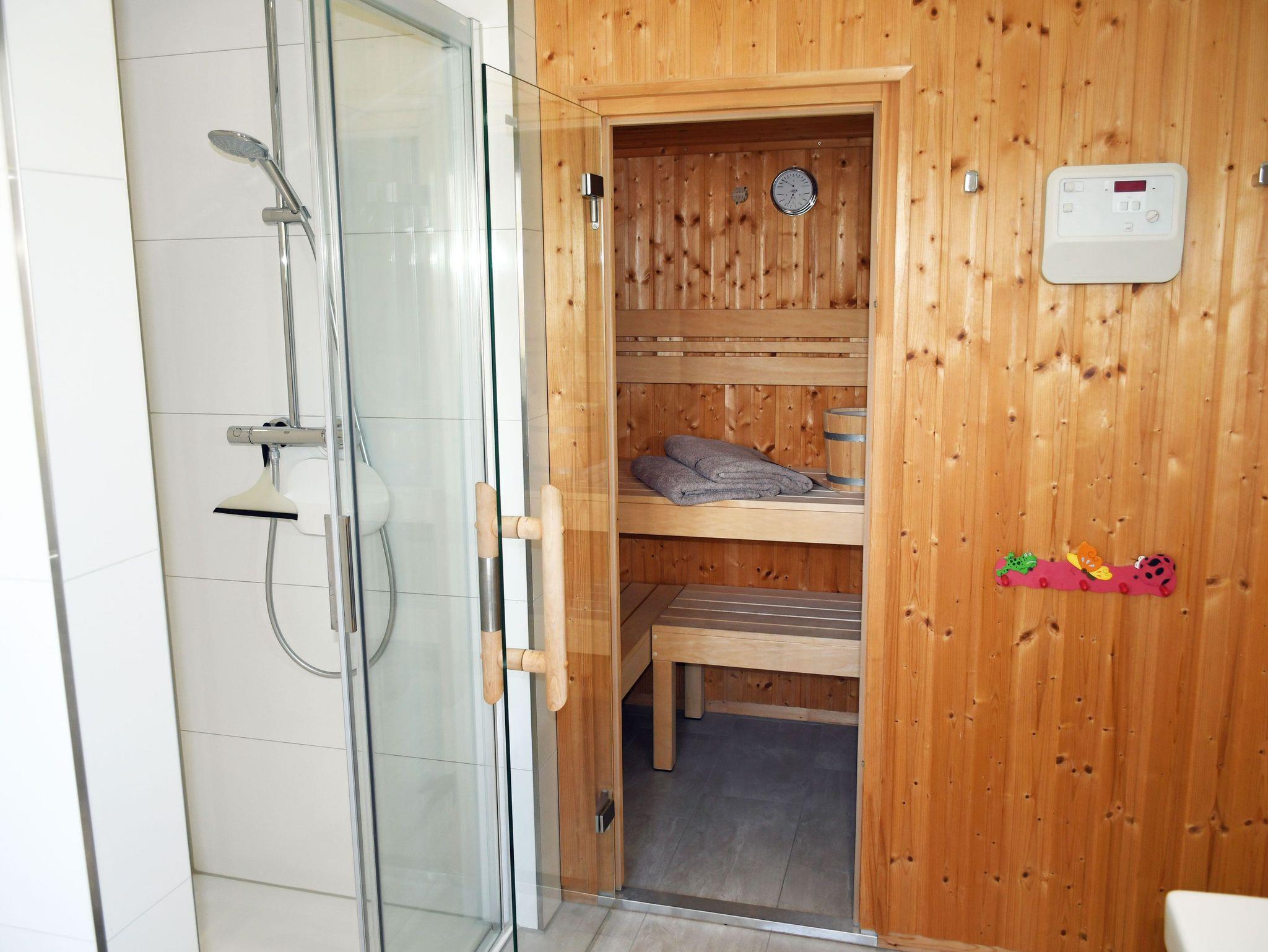 o ein geräumigen Wellnessbad mit großer Dusche und kleiner finnischer Sauna für 2 Personen