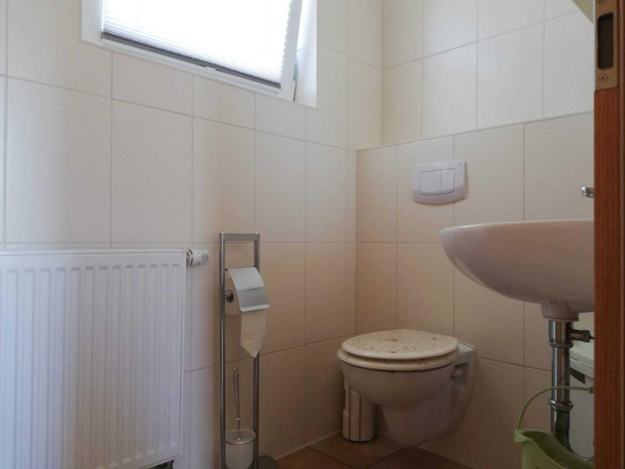• ein kleines Badezimmer mit WC und ebenerdiger Dusche