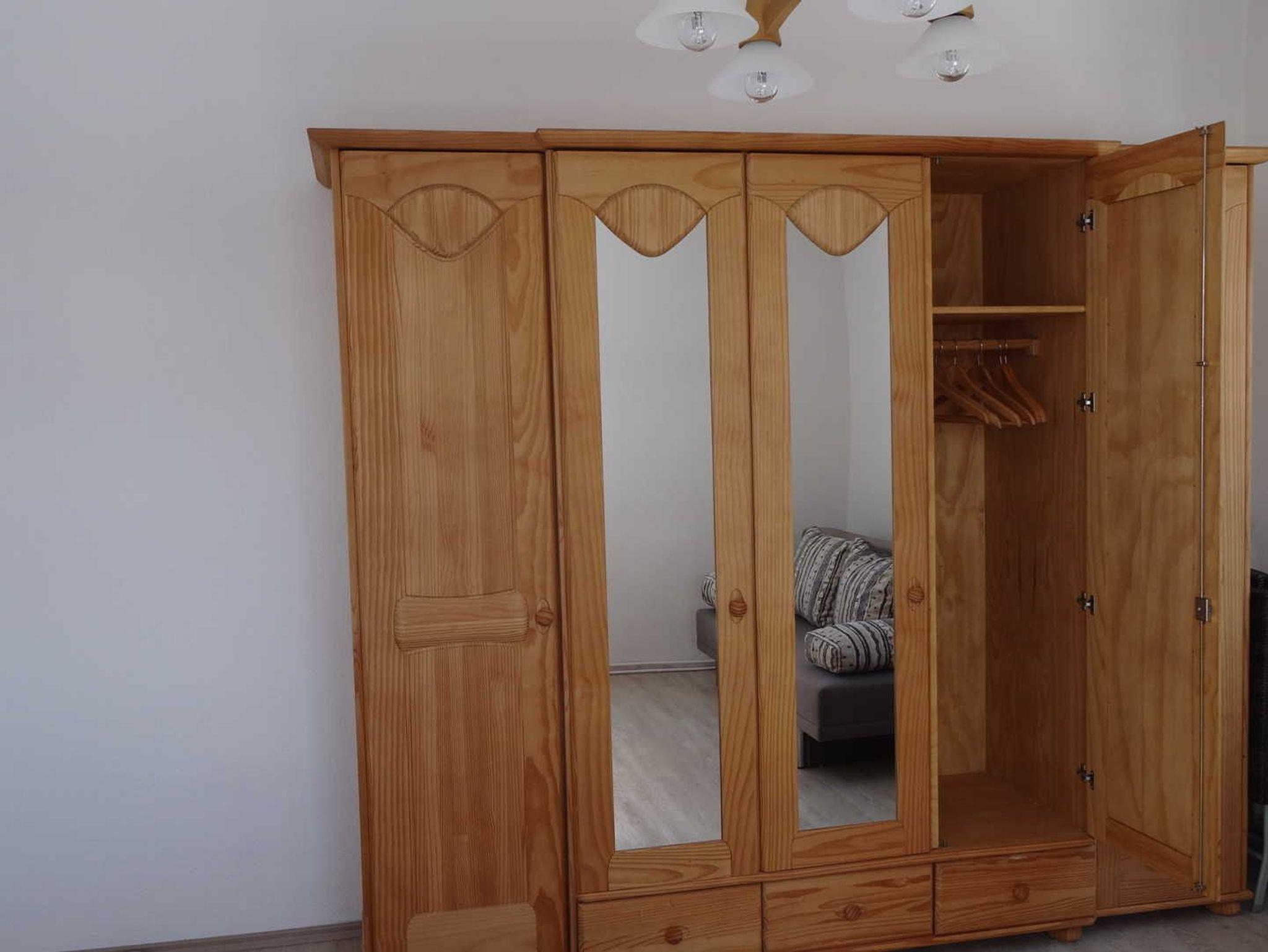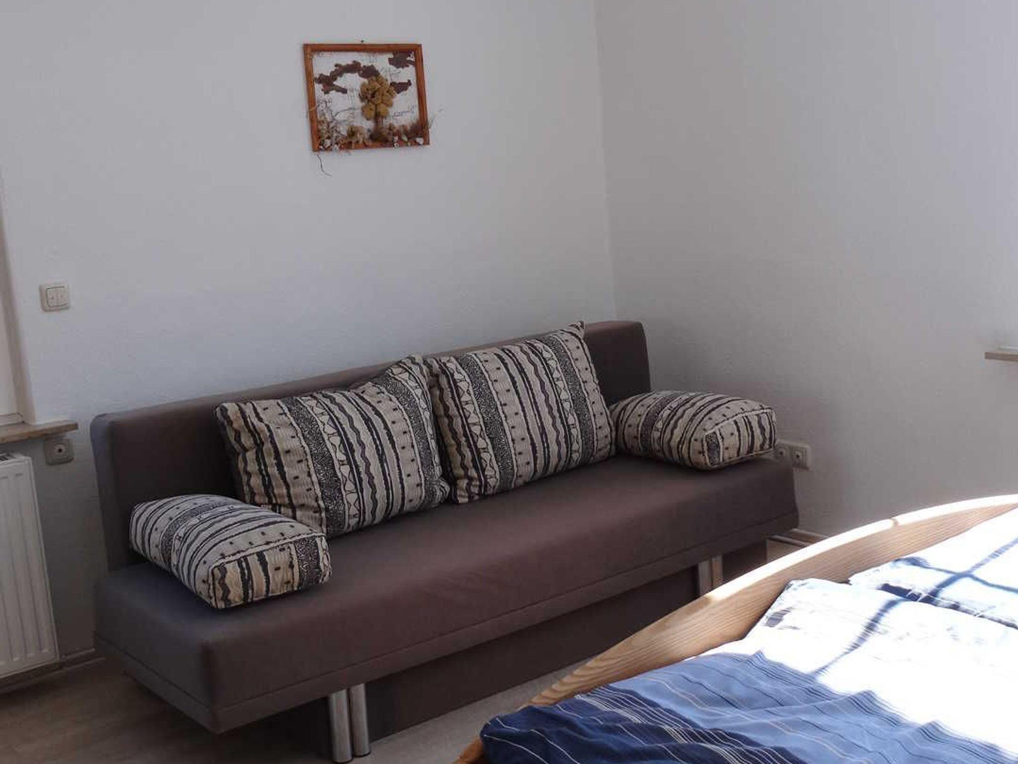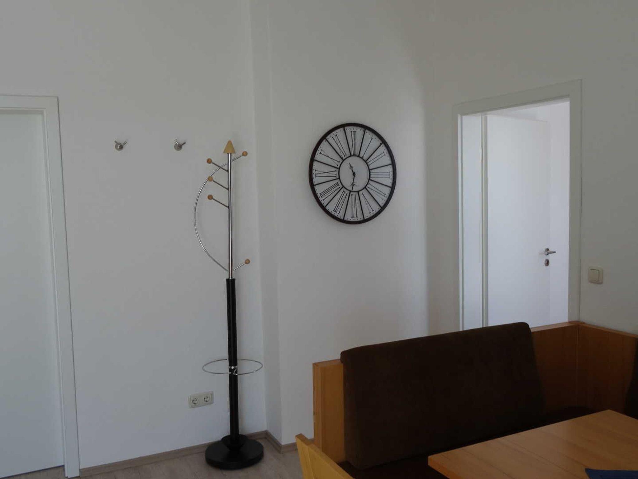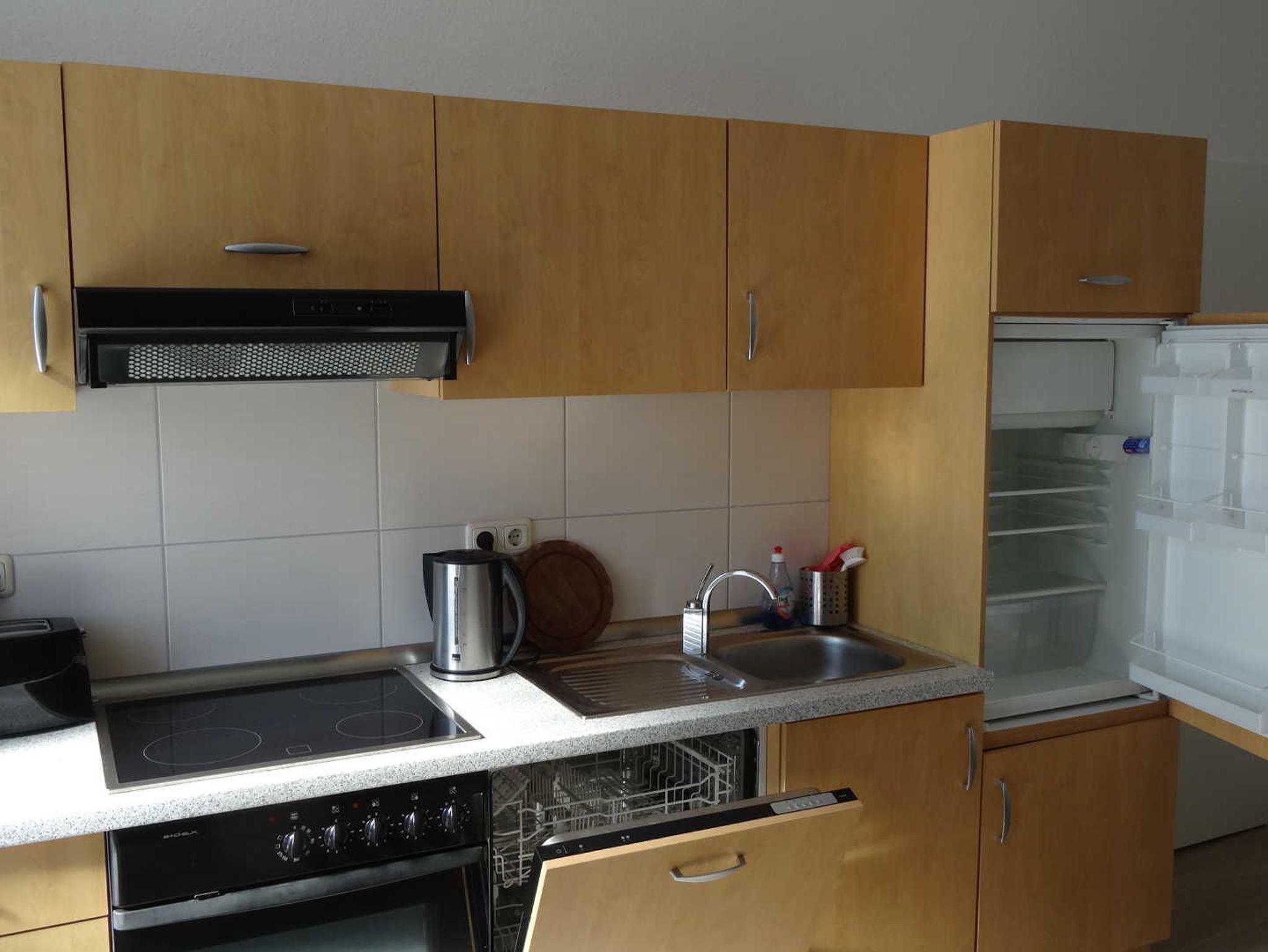 Die Ferienwohnung hat einen separaten Eingang. Dieser ist über eine Außentreppe zu erreichen. Die FeWo ist 43 m² groß und hat ein separates Schlafzimmer mit einem Doppelbett und einer ausziehbaren Schlafcouch. An den Fenstern befinden sich Rollläden. Im großen Wohn-/Essraum befindet sich ein Fernseher, Geschirrspüler, Ceran-Kochfeld, Backofen, Kühlschrank mit Gefrierfach und eine Essecke für 5 Personen. Im Bad befindet sich eine große Dusche. Natürlich ist eine kostenlose W-LAN Nutzung möglich.