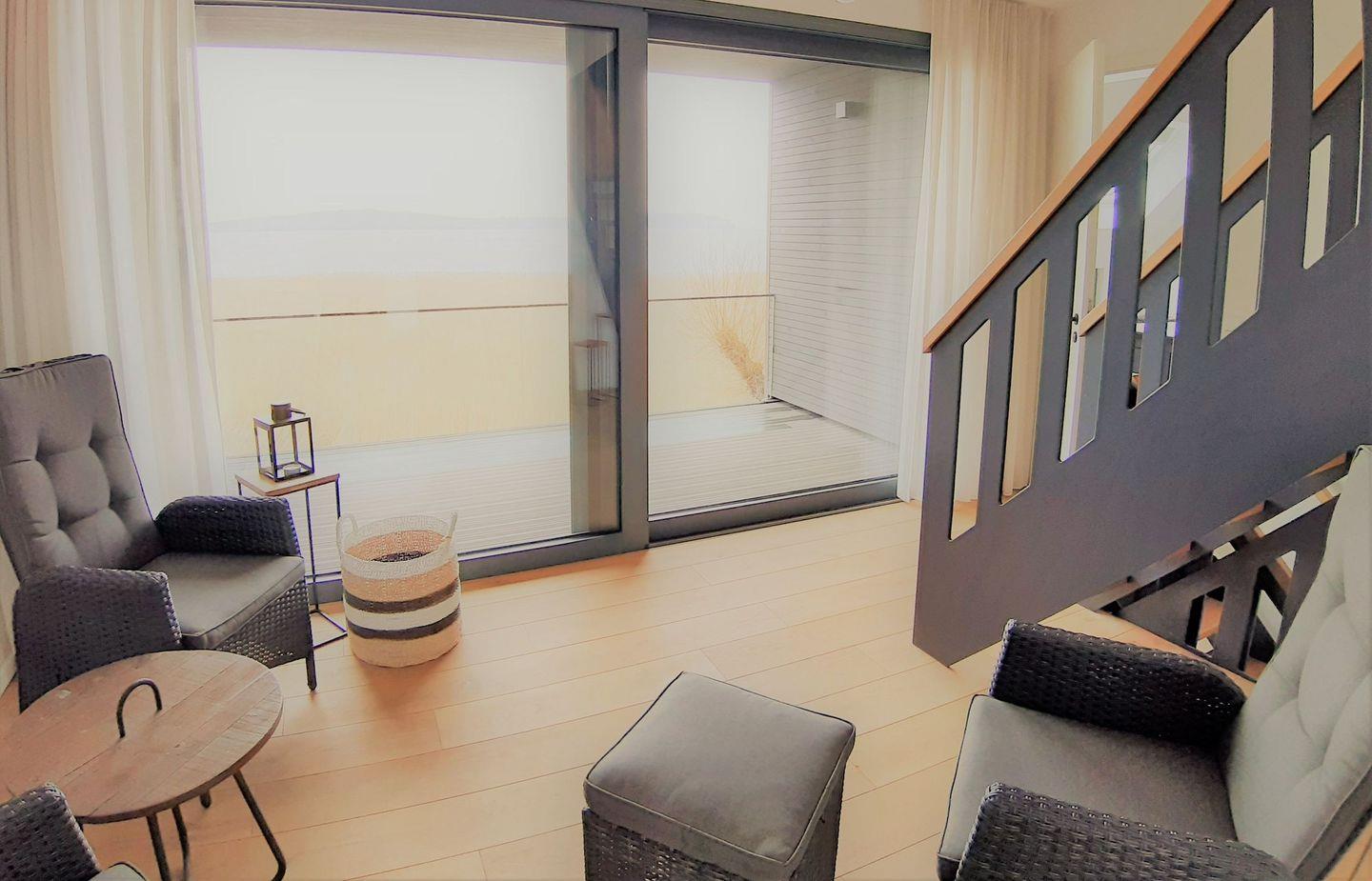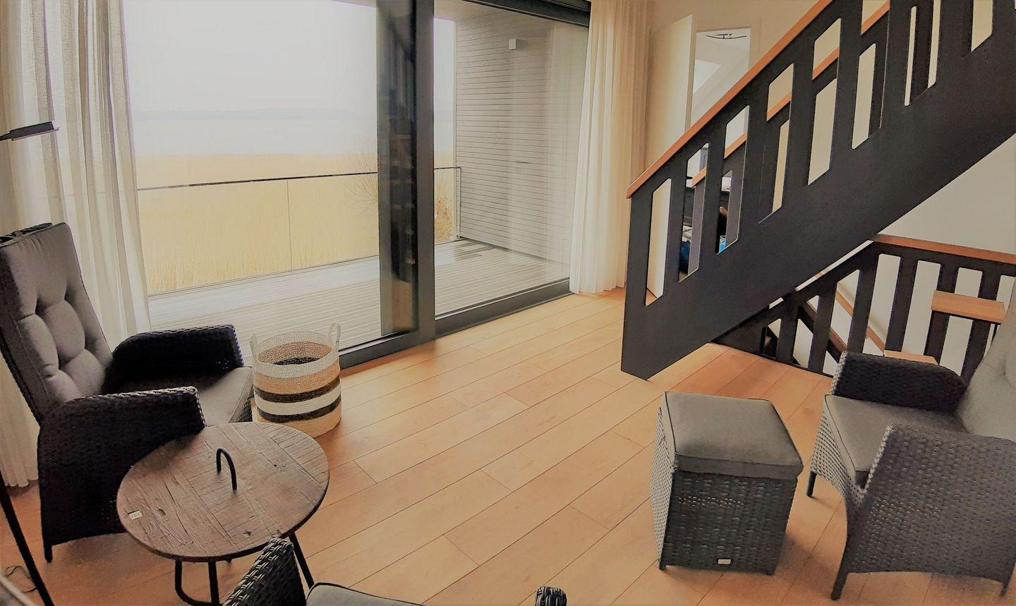 Mehrere Terrassen und Loggien ermöglichen ungestörte Stunden im Freien – ob beim Frühstück mit Boddenblick oder beim entspannten Ausklang des Tages in der Abendsonne.
