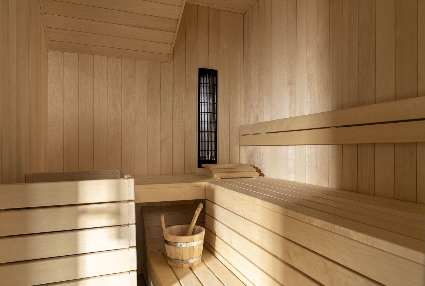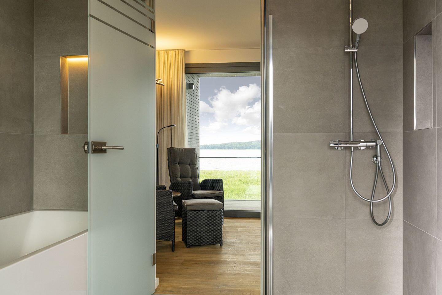 Wellnessbereich mit Sauna, Dusche, Wannenbad & Relaxzone mit Aussicht