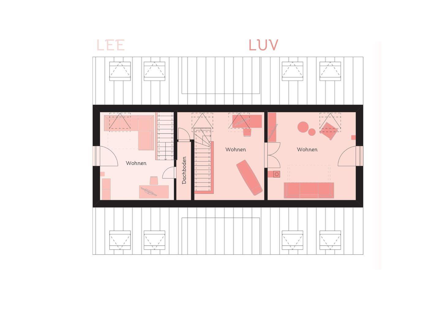 Bei Bedarf kann das benachbarte Ferienhaus „Lee“ mit zwei weiteren Schlafzimmern und Schlafsofa im Spitzboden dazugebucht werden – ideal für bis zu 6 zusätzliche Gäste.