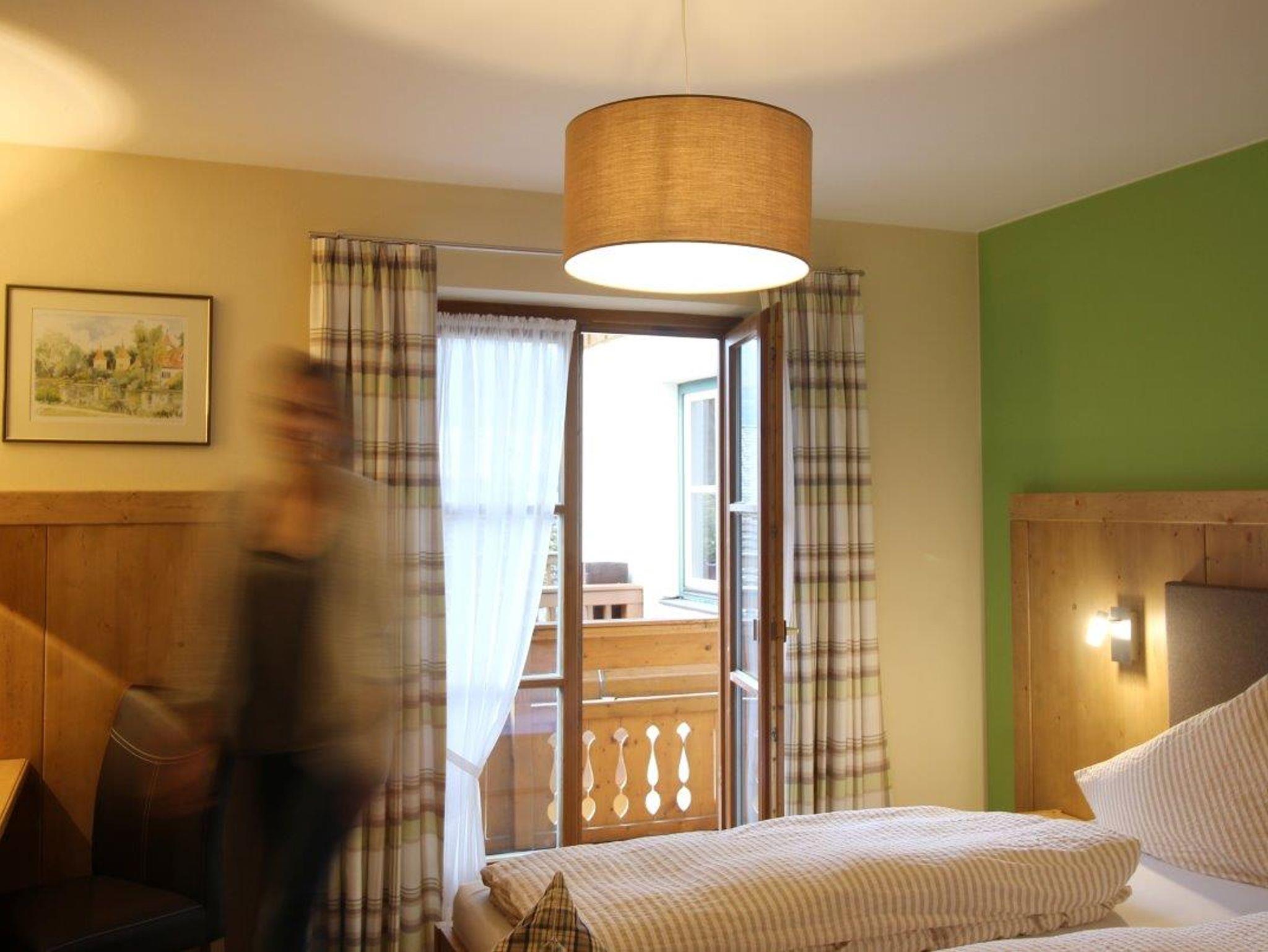 Das Zimmer wurde 2016 komplett renoviert. Ausstattung: Massivholz-Doppelbett, kleine Sitzecke mit Wandvertäfelung, Fußboden in Holzoptik, Sat-TV mit Flachbildschirm, kostenloses W-LAN und Zimmersafe, hochwertige LED-Beleuchtung. Badausstattung: Echtglas-Dusche, WC, Föhn, Seifenspender. Möblierter Balkon mit Blick in den Garten.