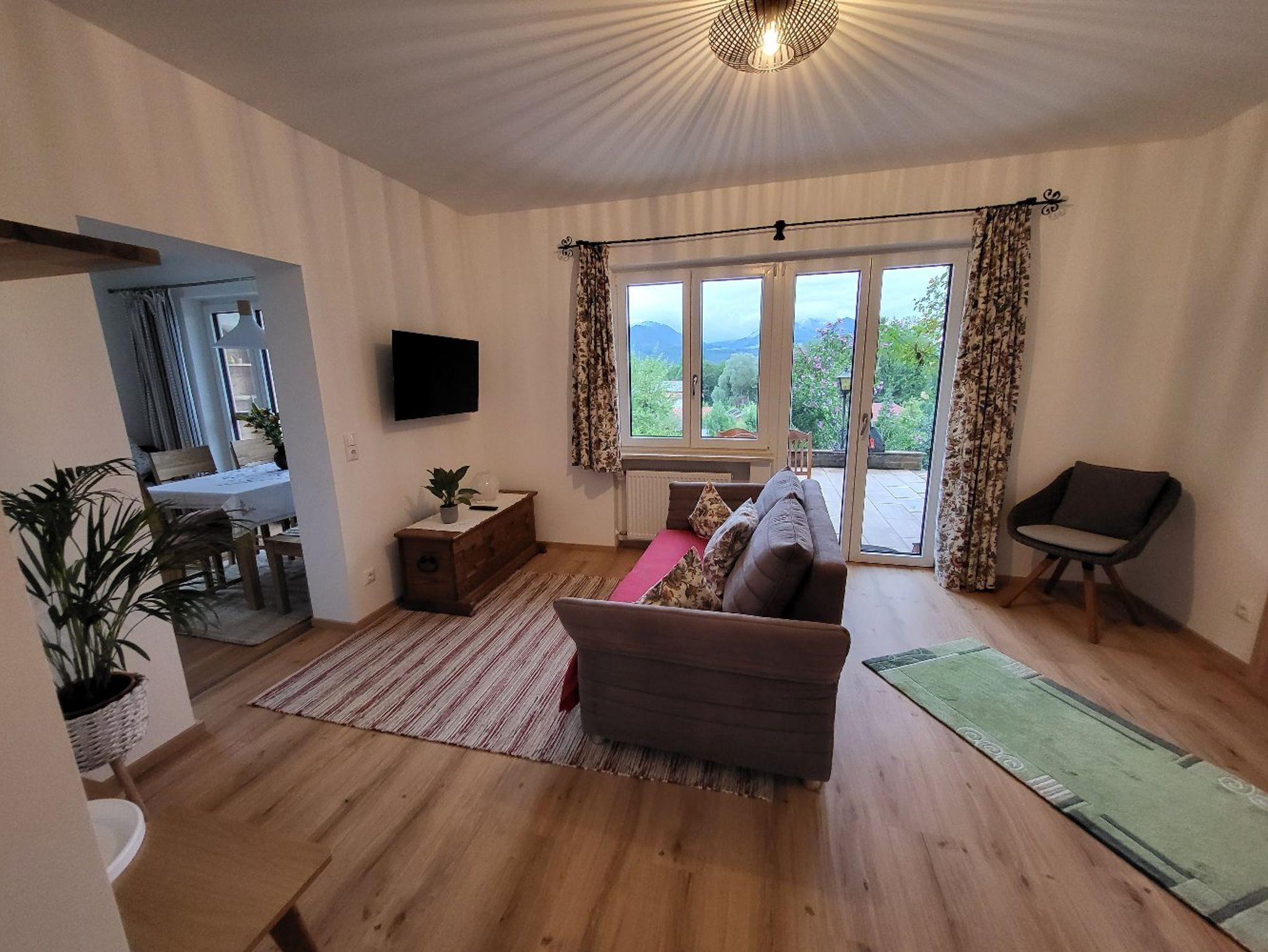 Unser Gästehaus in Bernhaupten liegt in einer ruhigen Wohnlage an einer Südhanglage mit unverbauten Panoramablick auf unsere Hausberge Hochfelln und Hochgern und Kampenwand. Zudem verfügen wir über einen großen Garten mit Schaukel. In unmittelbarer Nähe befindet sich noch ein Spielplatz. Bernhaupten gehört zur Gemeinde Bergen. Der Ortskern ist 3 km von uns entfernt. Bergen selbst ist ein lebendiger Ort mit Kurpark, Kneippanlage, Naturfreibad mit Beachvolleyballanlagen, Einkaufsmöglichkeiten, Restaurants und Veranstaltungen. Direkt vom Haus weg sind Wanderungen und Radtouren in die Chiemgauer Berge oder zum Chiemsee möglich. Auch führt der Radweg Königsee-Bodensee in unmittelbarer Nähe an unserem Haus vorbei. Der Bahnhof ist fußläufig in 10 Minuten zu erreichen. Womit einem Tagesausflug mit der Bahn nach Salzburg, Rosenheim, München oder Traunstein nichts im Wege stünde. Ebenfalls befindet sich in Bahnhofsnähe ein kleiner Supermarkt der Ihren täglichen Bedarf abdeckt. Ihre Frühstücksbrötchen werden bei Bedarf von unserem heimischen Bäcker bis vor die Haustüre geliefert.