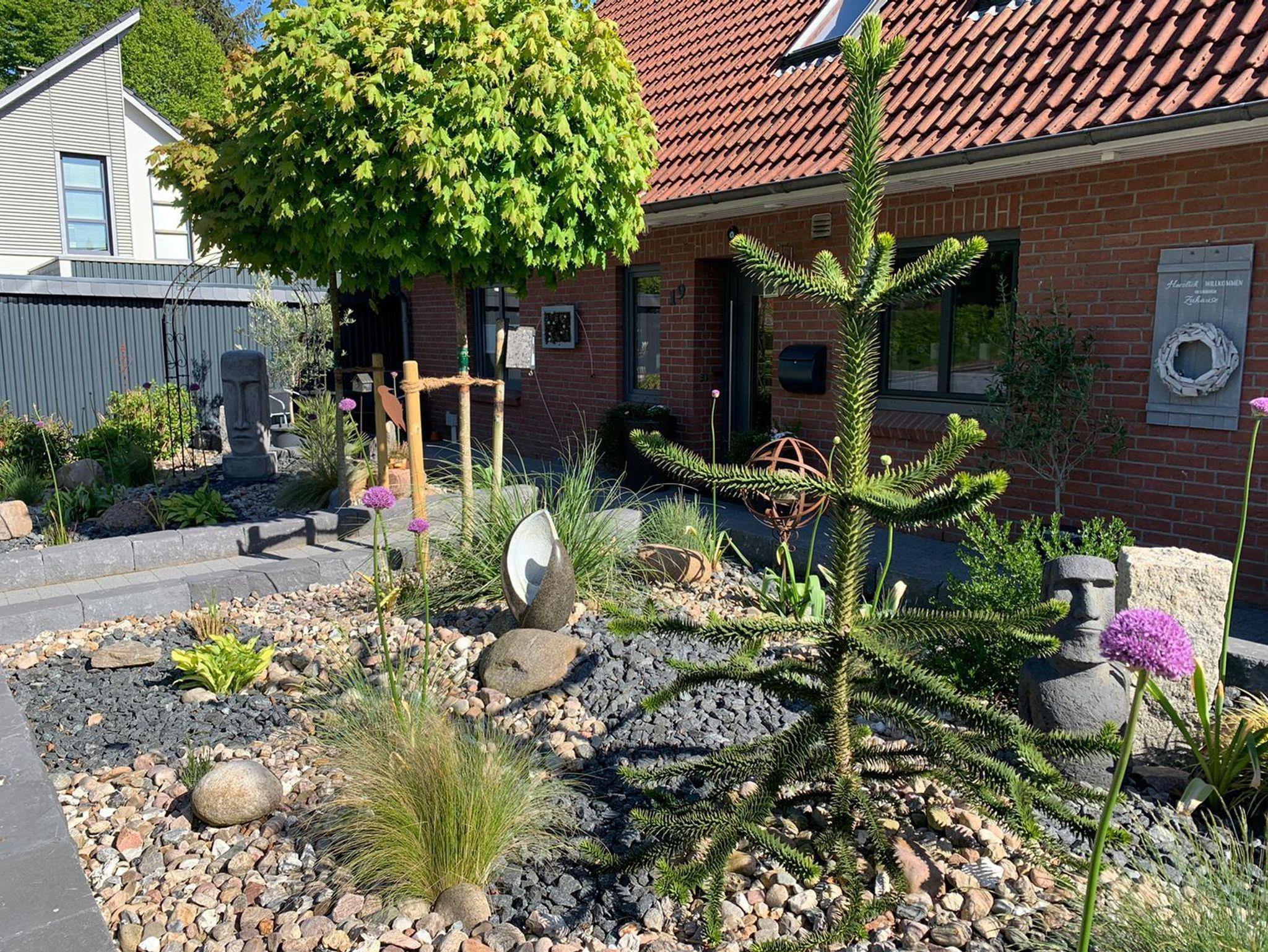 Haus mit Garten, Gästeterasse vorhanden. KFZ Stellplatz vor dem Haus. Ferienwohnungen liegen im 1.Stock. Garten mit Steingärten angelegt. Gästeterasse mit Strandkorb. Grill und Liegemöglichkeiten vorhanden. Seperater Eingang. Haus liegt in einer ruhigen Seitenstraße mit Hanglage.