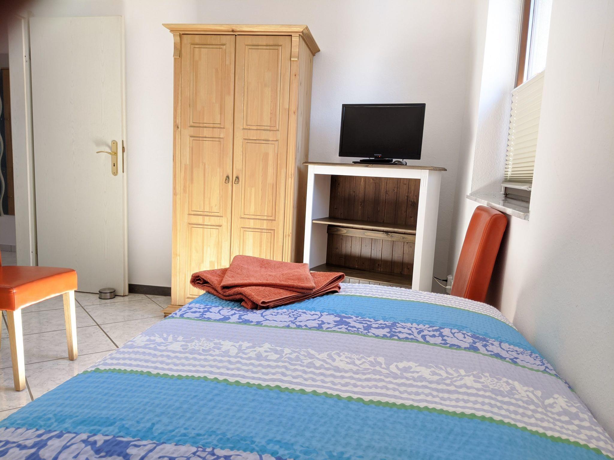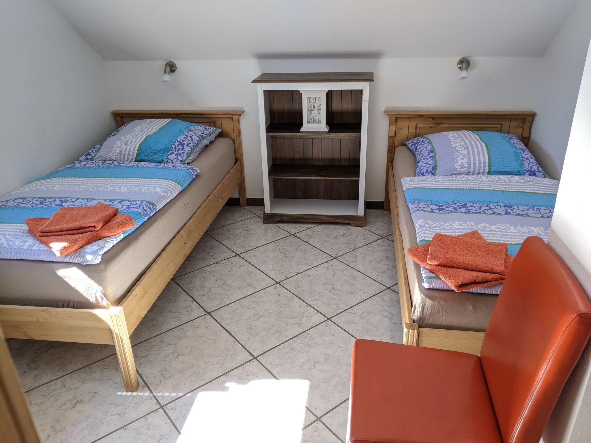 The flat is located on the top floor of a detached house and offers space for four people and one additional person with an extra bed.