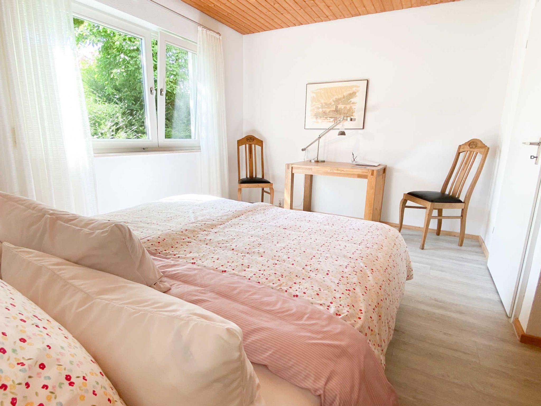 Unser Haus liegt in schöner, ruhiger Südwest-Wohnlage am Ortsrand (und noch nahe dem Ortszentrum, ca. 1km), unweit von Weinbergen und Feldern. Unsere Gäste wohnen in zwei geschmackvoll eingerichteten Ferienwohnungen im Erdgeschoss.