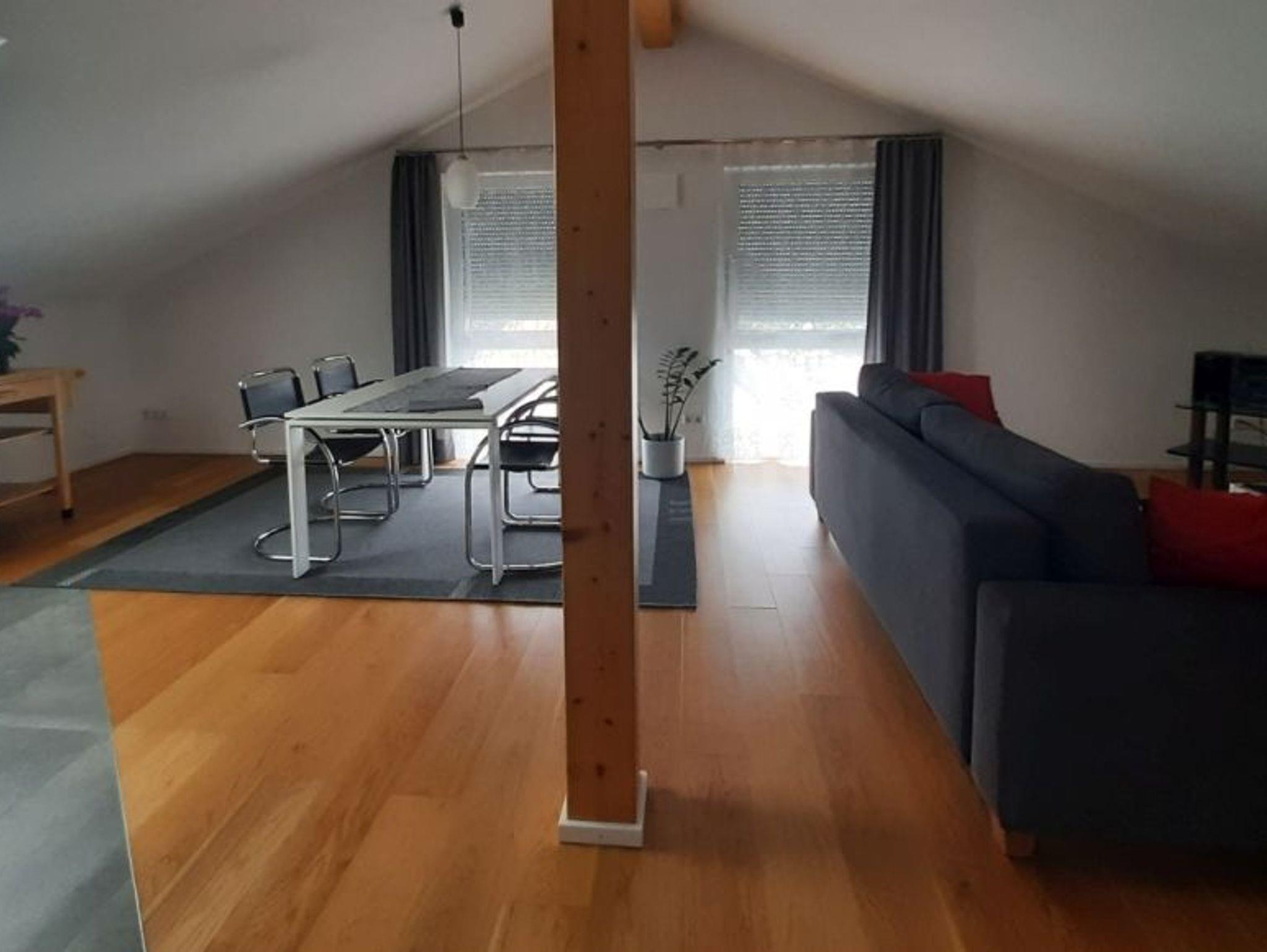 Wir bieten Ihnen eine voll ausgestattete Küche mit großem Tisch und Wohnbereich in gemütlichem Dachgeschoßraum. Es sind eine Kaffeemaschine, Kühl-/ Gefrierkombination, Spülmaschine, Herd mit Backofen, Wasserkocher, Toaster, etc. vorhanden. Ein GLUTENFREI-Paket (Pfanne, Backofen-Toaster etc.) ist auf Wunsch vorhanden. Schlafsofa auf Anfrage. In dieser Dachgeschoss-Wohnung mit separatem Eingang können Sie es sich auch bei Regentagen gemütlich machen. Im Garten gibt es einen gemütlichen Sitzplatz, den Sie nutzen können. Anreise nach Vereinbarung möglich.