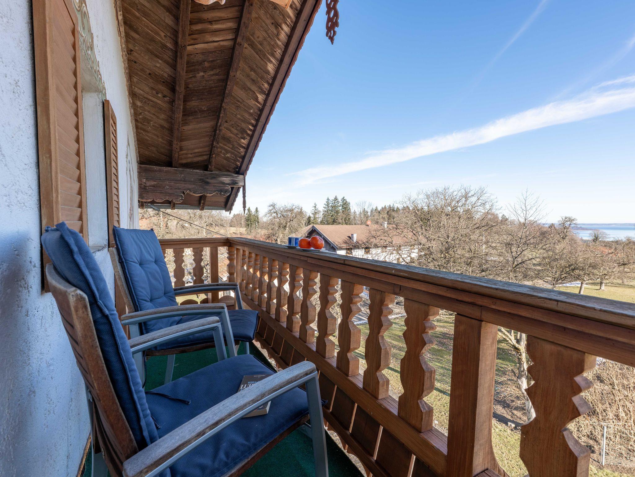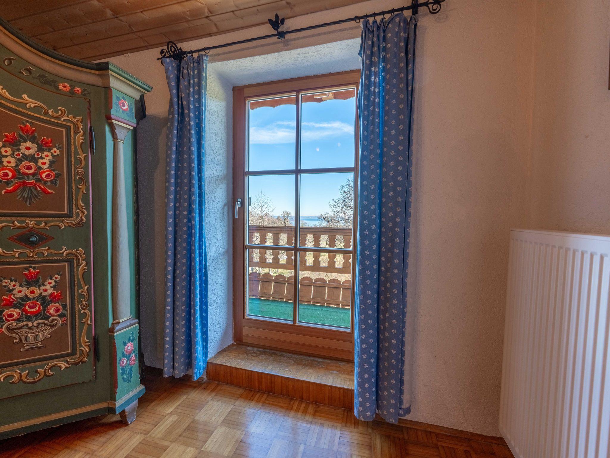 ChiemseeBlick - Die gemütliche Ferienwohnung im rustikalen bayerischen Stil mit traumhaftem Blick auf den Chiemsee! Ruhig gelegen im 2. Stock eines ehemaligen Bauernhofs bietet die 3-Zimmer-Wohnung zwei Schlafzimmer (1xDoppelbett und 1xDoppelbett und Einzelbett), zwei Bäder, eine gut ausgestattete Küche sowie einen Ostbalkon für entspannte Morgenstunden. Garten mit Sitzplätzen, Liegen, Grill, Kinderspielplatz und kleinem Außenpool stehen zur Mitbenutzung bereit. Kostenloses WLAN, Parkplatz am Haus und Wäschepaket inklusive. Ideal für Familien, Paare oder Freunde, die Ruhe und Natur genießen möchten.
