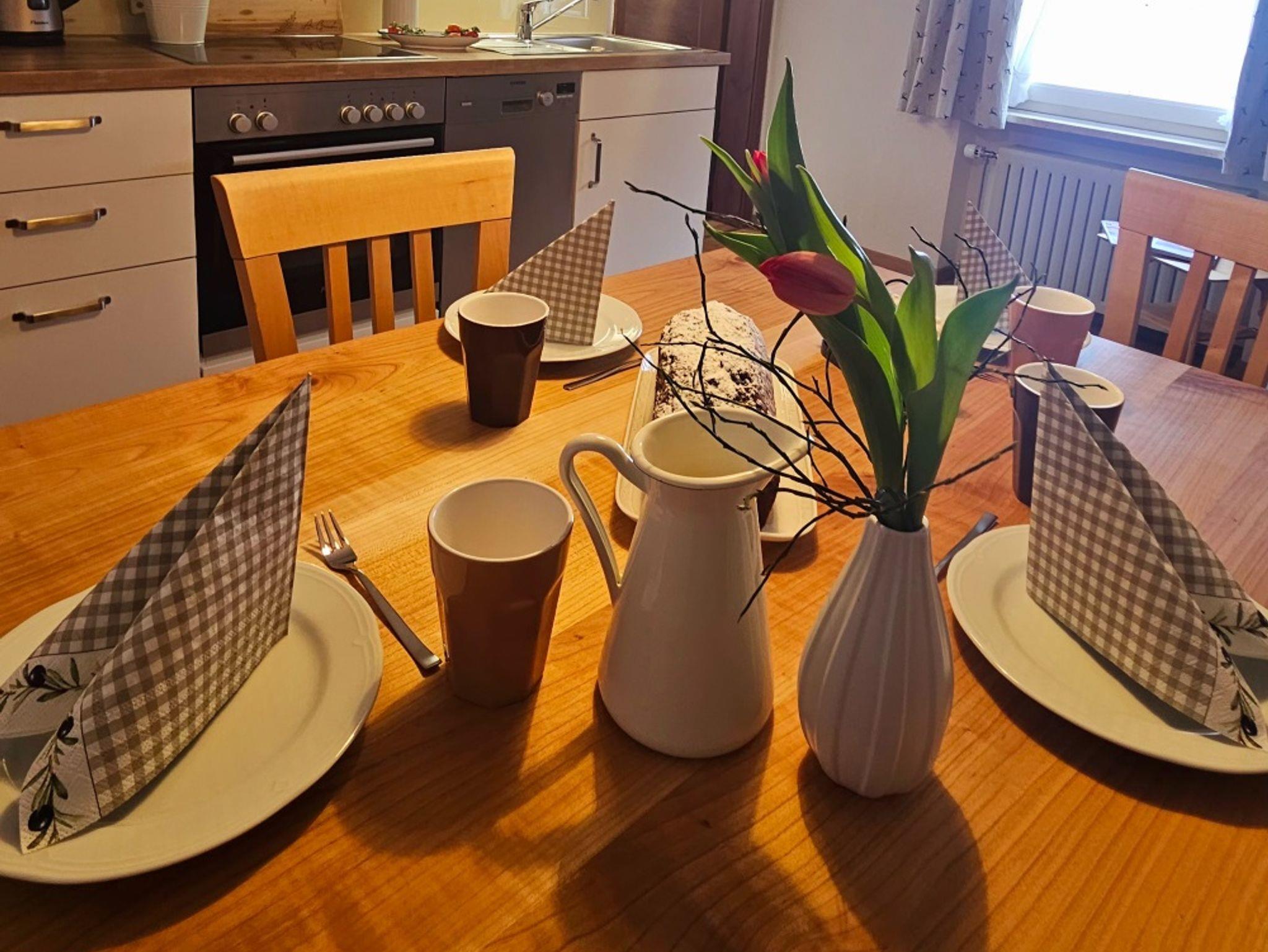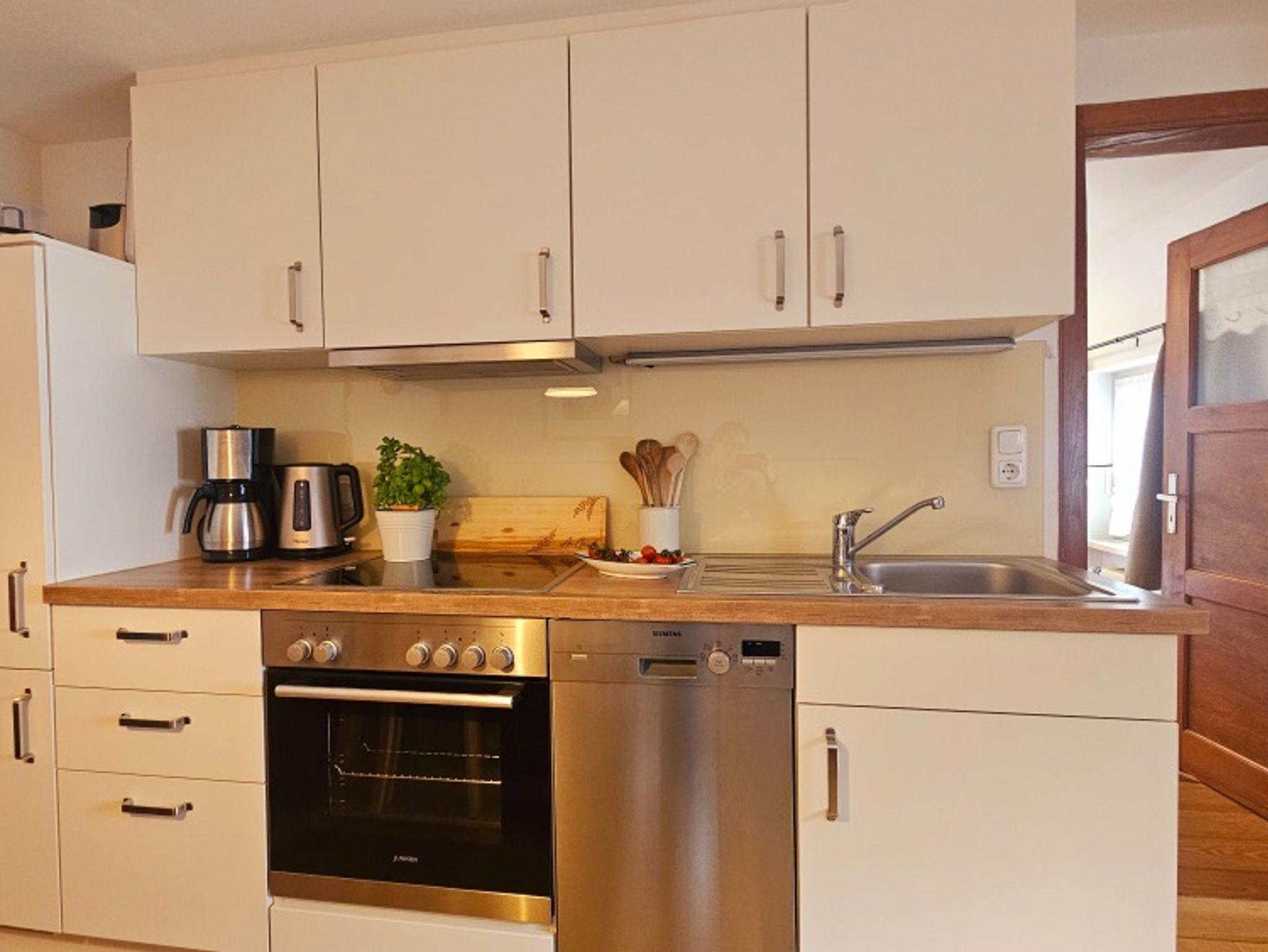 Die Wohnung liegt im 2. Stock unseres Hauses. In zwei separaten Schlafzimmern, mit angenehmen Farben und natürlichen Materialien, kommen Sie entspannt zur Ruhe. Beide Schlafzimmer sind mit Parkettböden ausgestattet. Ein Schlafzimmer hat direkten Zugang zum Balkon, auf dem Sie morgens den Sonnenaufgang genießen können. Die Wohnküche verfügt über eine Essecke, TV und Internetanschluß, sowie eine komplett mit Spülmaschine ausgestattete Küchenzeile. Bett- und Tischwäsche, Handtücher sowie Kinderausstattung sind natürlich inbegriffen. Für Ihr Wohlbefinden erwartet Sie ein neues Bad mit begehbarer Dusche. Ruhen Sie sich aus, im Garten mit gemütlichem Sitzplatz und Grillmöglichkeit, von dort aus haben Sie und Ihre lieben Kleinen im Blick, die sich auf dem Kinderspielplatz mit großem Trampolin, Tretfahrzeugen, Tischtennis und Kicker austoben können.