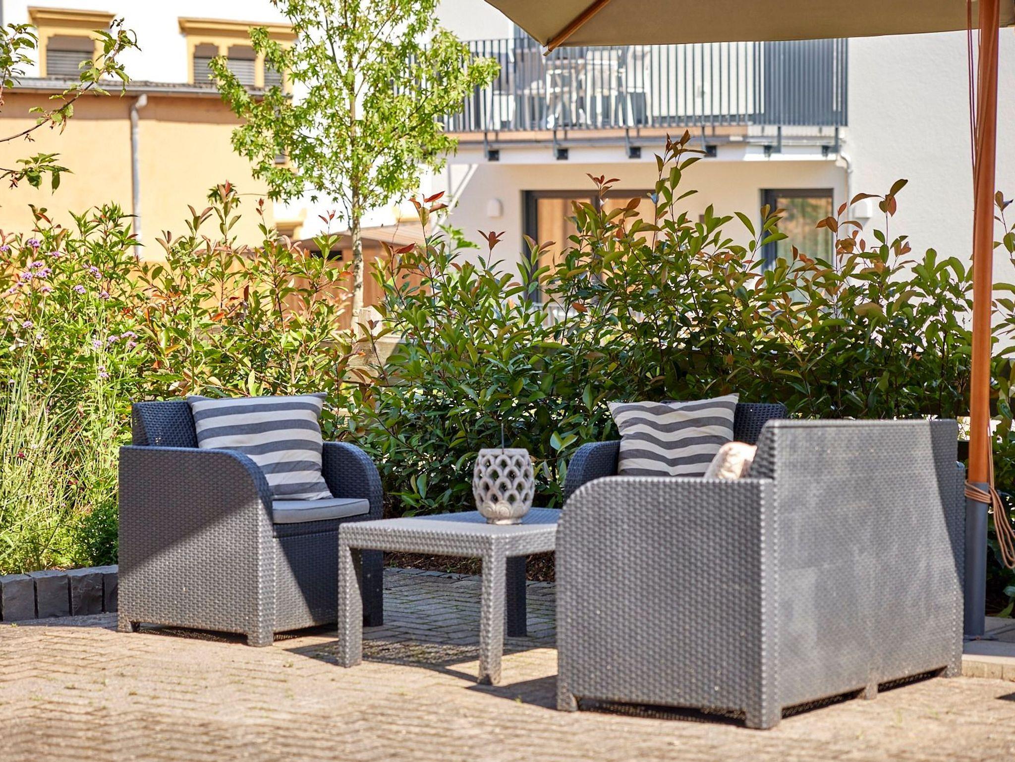 Zum Feriendomizil gehört der idyllische Innenhof des ehemaligen Weinguts mit Sitz- und Grillmöglichkeiten und einem phantastischen Blick auf Weinbergshänge und zur Burg Landshut. Das Winzerhaus in Bernkastel-Kues ist ein Ort für Familien und Freunde zum Krafttanken und Wohlfühlen von der ersten Minute an.
