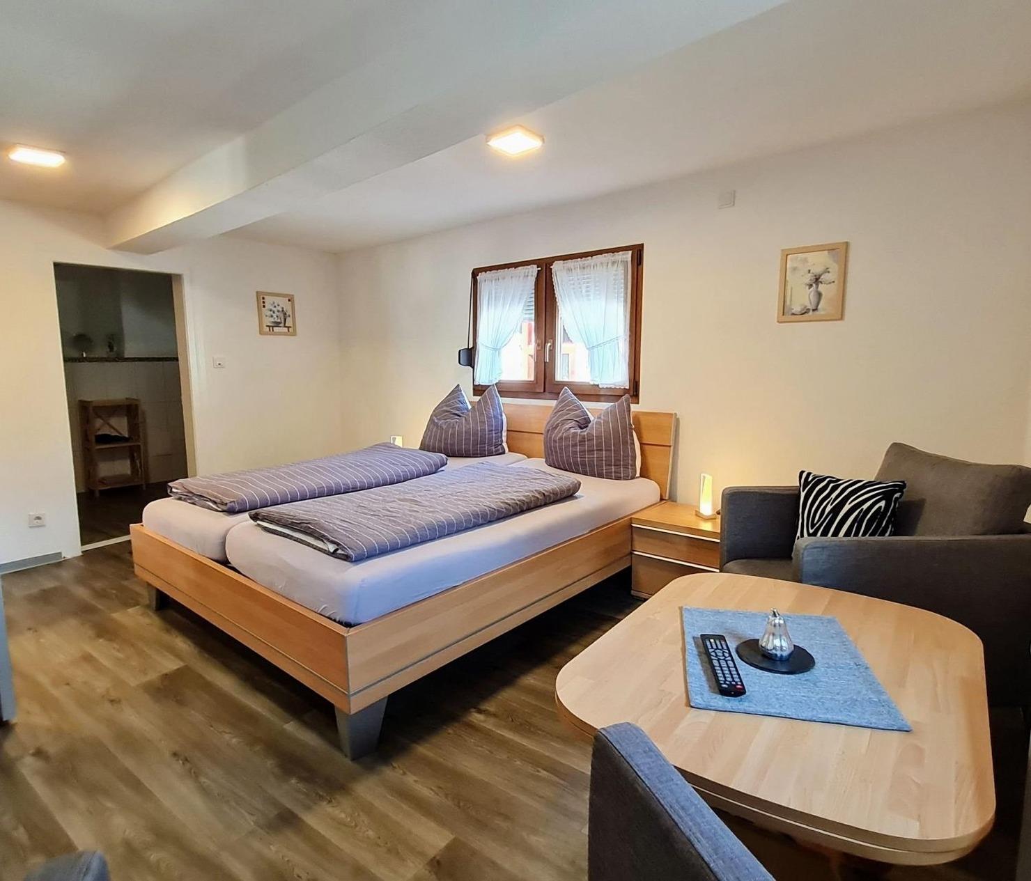 Ebenfalls finden Sie hier das gemütlich eingerichtete Wohnzimmer mit TV (40 Zoll), DVD-Player und Stereoanlage.