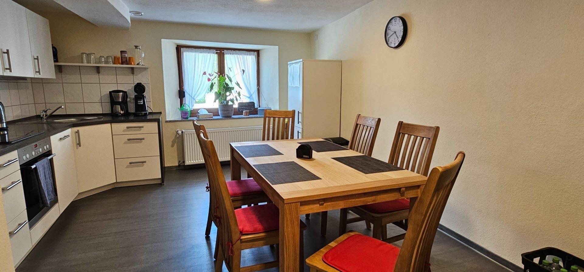 Des Weiteren finden Sie eine große Küche mit kompl. ausgestatteter Einbauküche und Essbereich.