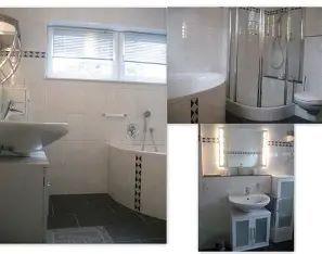 Für erholsame Nächte stehen Ihnen zwei getrennte Schlafzimmer zur Verfügung, wobei ein Schlafplatz besonders für ein Kind geeignet ist. Das Badezimmer ist ausgestattet mit einer Badewanne und einer integrierten Dusche (Dusche mit Wanne), Warmwasser, Waschbecken sowie Spiegel und Haartrockner. Zusätzlich steht ein separates Gäste-WC zur Verfügung.