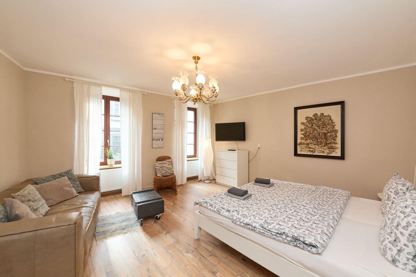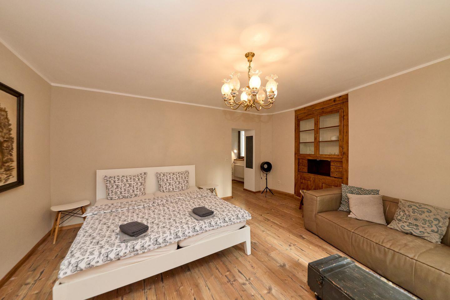 Die Residenz eignet sich für ein bis zwei Gäste, auch Haustiere sind herzlich willkommen, maximal zwei Tiere können Sie mit in Ihren Aufenthalt einbeziehen. Das Objekt verbindet den historischen Charakter des Hauses mit einer stylischen Inneneinrichtung.