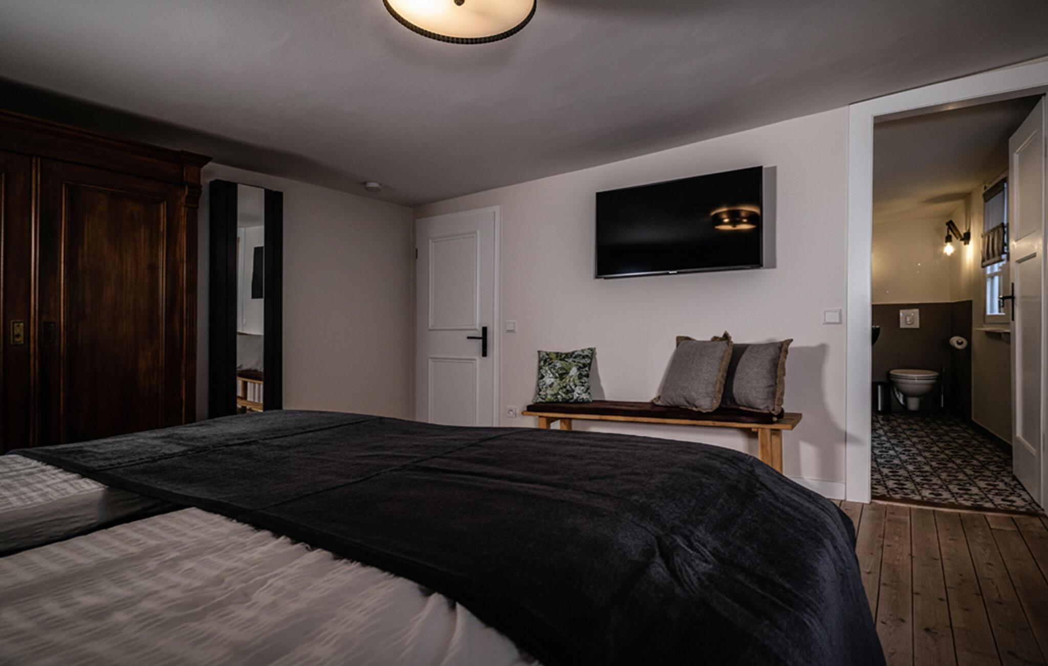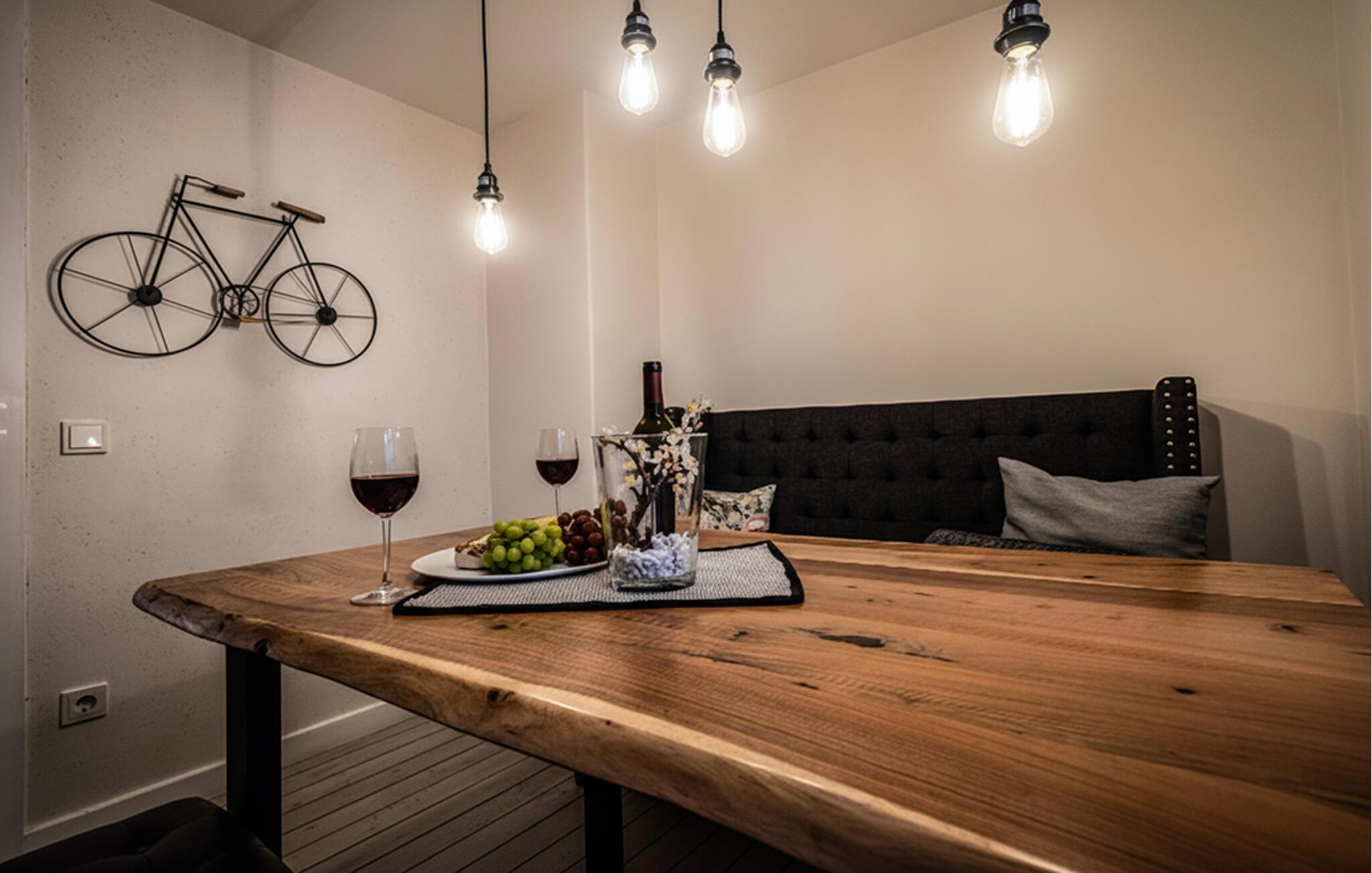 Velkommen til den innbydende og moderne leiligheten, som ønsker deg velkommen med stilfulle rom og innbyr til en avslappende pause. Ferieleiligheten byr på god plass til felles aktiviteter, enten dere lager mat sammen, arrangerer en spillekveld, slapper av i badstuen etter en utflukt eller snakker lenge i stuen. Den smakfulle innredningen gir ideelle forhold for å tilbringe en fin tid sammen i en stilfull atmosfære.