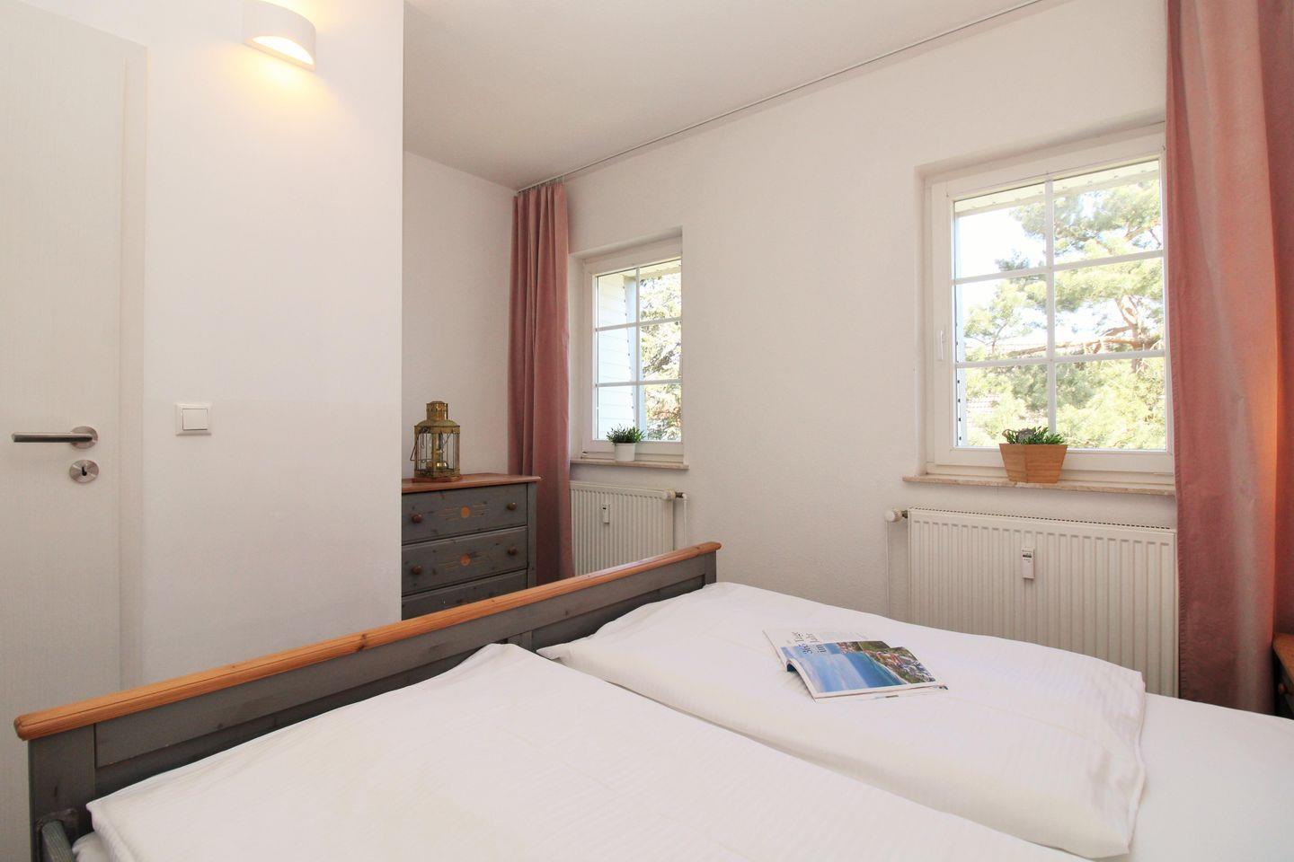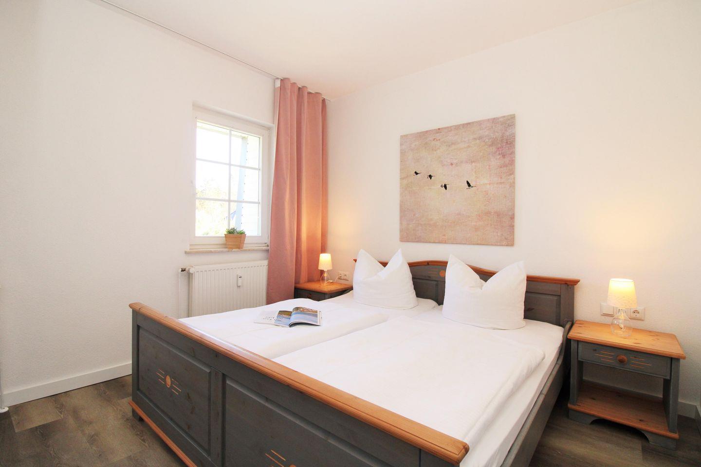 Das gemütliche und helle 1. Schlafzimmer ist mit einem bequemen Doppelbett, Nachttischen, einer Kommode sowie einem geräumigen Kleiderschrank (im Flur) eingerichtet. Zusätzliche Verdunkelungsvorhänge an den Fenstern ermöglichen Ihnen eine ungestörte Nachtruhe.