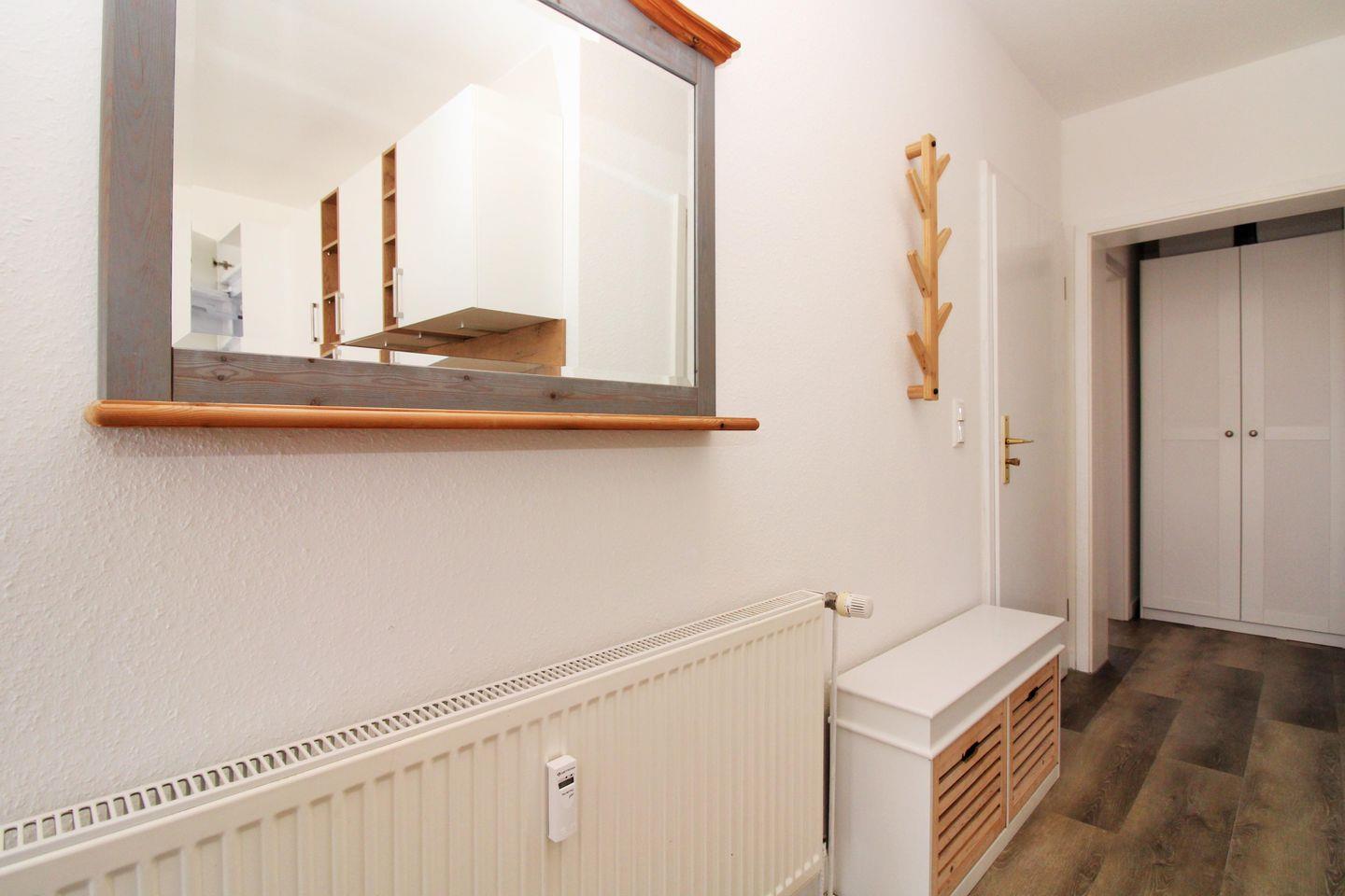 Vom Flur mit Garderobe, Schuhschrank und Spiegel erreichen Sie bequem alle Räume Ihrer Ferienwohnung.