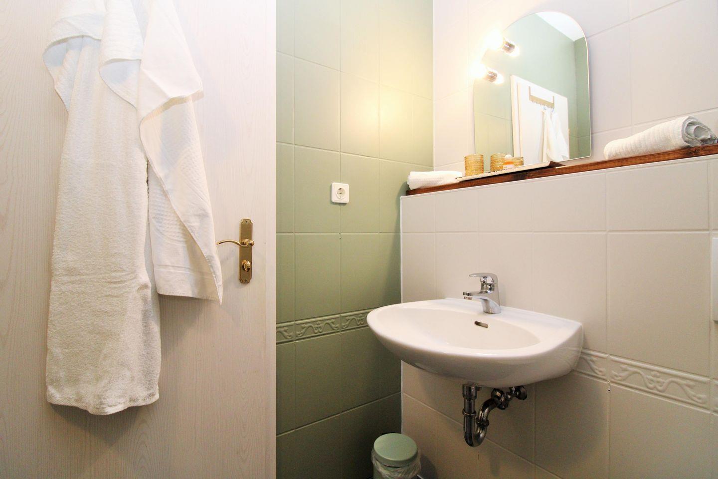 Das sich vom Flur vor dem 2. Schlafzimmer befindliche zusätzliche 2. Badezimmer (mit Tageslicht / Fenster) verfügt über eine Dusche, Waschbecken und WC sowie einen Stuhl.