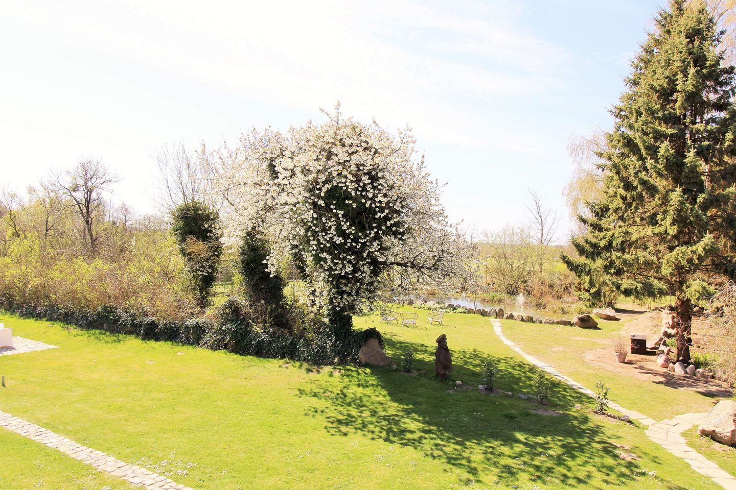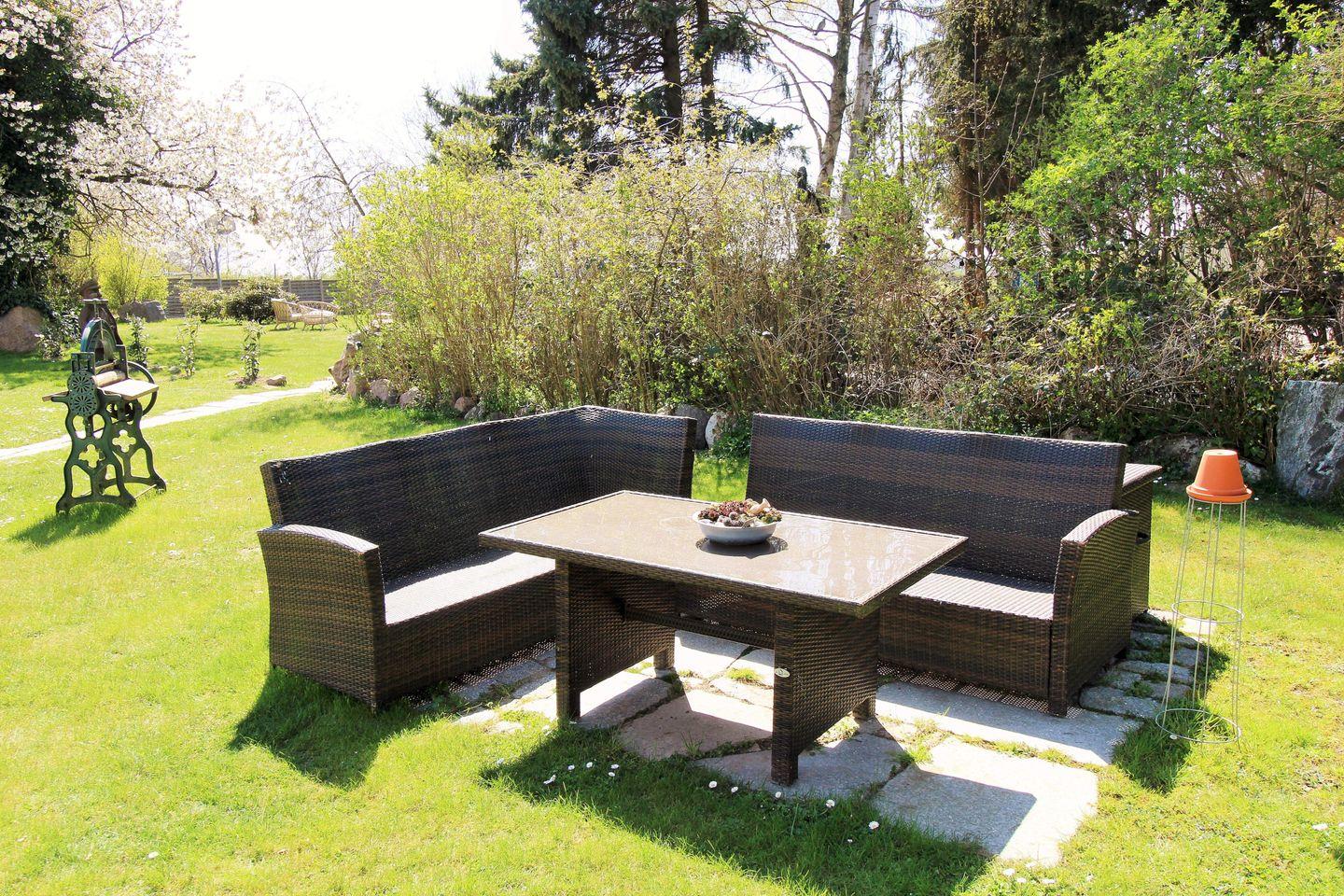 Das großzügige Wohn-/Esszimmer verfügt über eine separate Sitzgruppe mit bequemer (Schlaf-)Couch, Couchtisch, eine Kommode und einen großen Esstisch mit 4 Stühlen. Vom Wohnzimmer aus haben Sie Zugang zu dem lichtdurchfluteten Wintergarten (nach Süden ausgerichtet) mit einer weiteren Sitzgruppe bestehend aus einer Sitzbank, 2 Stühlen sowie einem großen Esstisch. Hier sitzen Sie entspannt und gemütlich im Grünen und können abends bei einem guten Glas Wein in Ruhe die lauen Sommernächte genießen!