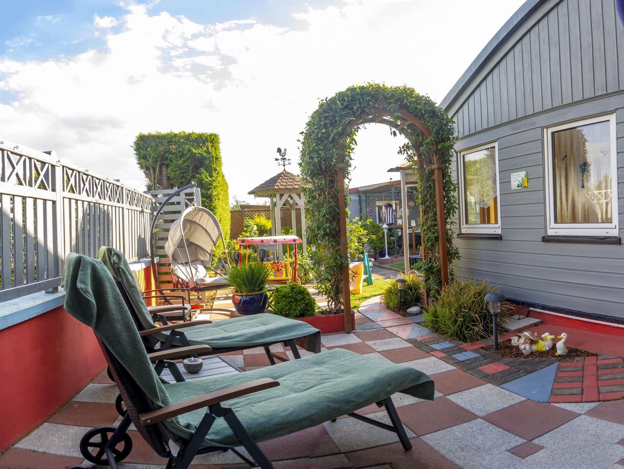 Im Hof finden unsere Gäste eine gemütliche Sitzecke mit vier Stühlen und Polsterauflagen vor.