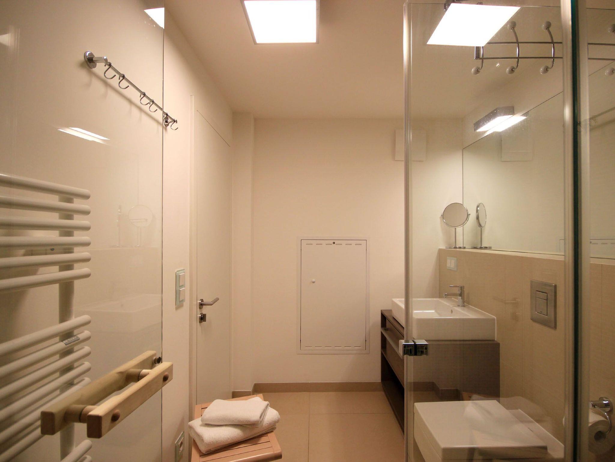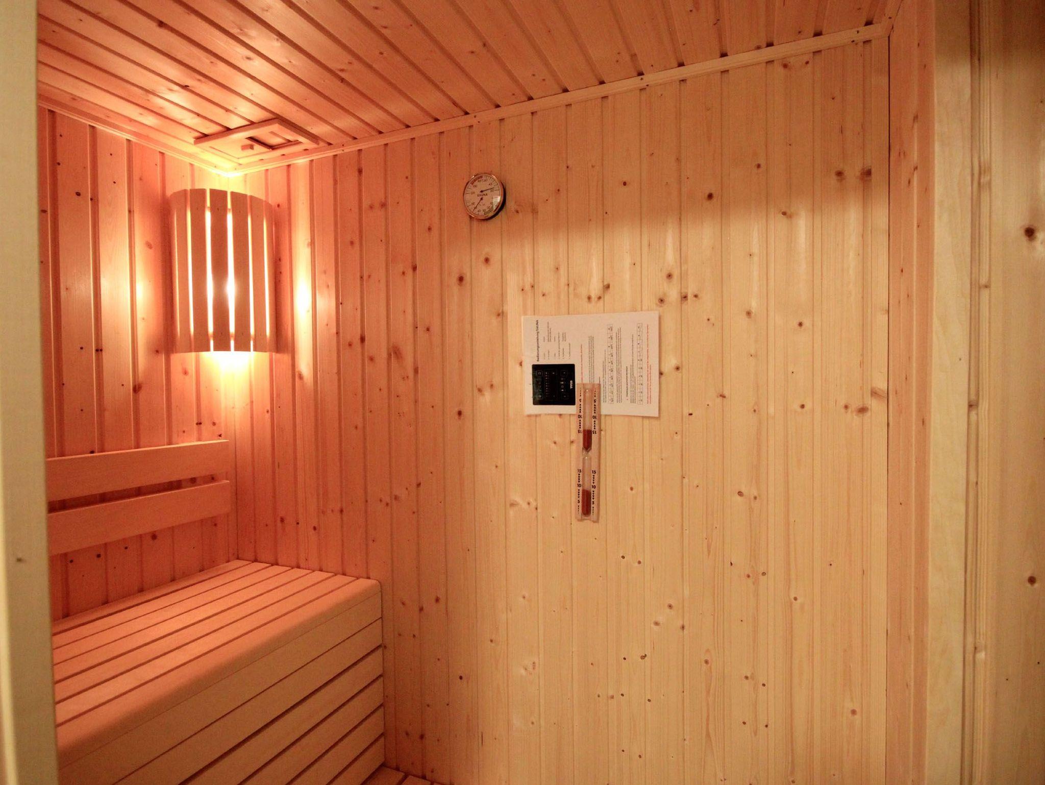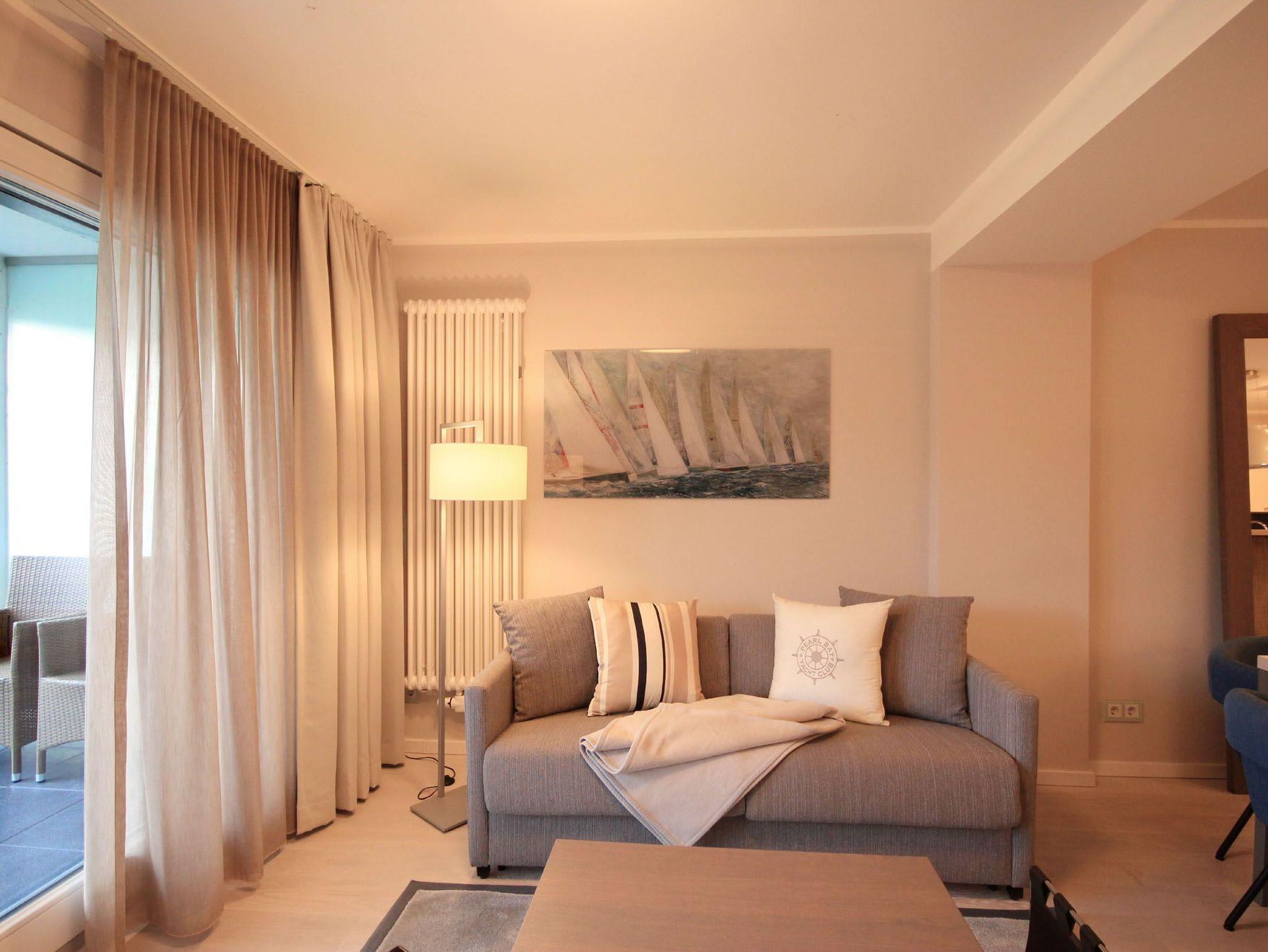 Ihre Nichtraucherwohnung verfügt über einen vorgelagerten Flur mit Garderobe. Angrenzend ist das schöne Wohnzimmer mit Essbereich und die moderne Wohnküche zu finden. Der stilvoll eingerichtete Wohnbereich, mit Zugang zum möblierten Balkon, ist mit einer Sitzgruppe, Flachbild-TV, WLAN, einem SONO Soundsystem, DVD-Player mit kleiner DVD-Sammlung sowie Brettspielesammlung ausgestattet. Im Küchenbereich erwartet Sie ein Backofen, Cerankochfeld, Mikrowelle, Geschirrspüler, Kühlschrank mit kleinem Gefrierfach, eine Kaffeemaschine, Wasserkocher, Toaster sowie umfangreiches Kücheninventar. Das Badezimmer verfügt über eine Sauna sowie über eine ebenerdige Dusche, Waschtisch, Kosmetikspiegel, Fön und einen Handtuchheiztrockner. Das Hauptschlafzimmer verfügt über ein Boxspringbett, TV, Kleiderschrank sowie einen weiteren Zugang zum Balkon. Im zweiten Schlafbereich befindet sich ebenso ein Boxspringbett, Safe und Kleiderschrank. Zusätzliche Verdunklungsstoffe sorgen für einen erholsamen Schlaf. Rundum eine erstklassig eingerichtete Wohnung zum Abschalten vom Alltag und Genießen des Urlaubes.