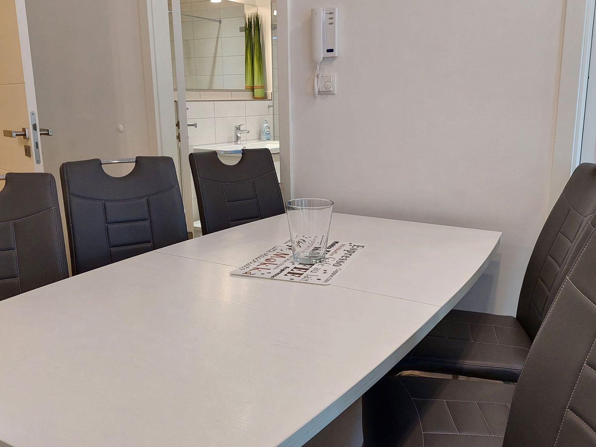 Es gibt eine moderne Eck-Einbauküche mit Cerankochfeld, Backofen, Geschirrspüler und Kühlschrank (samt Gefrierfach). Viele weitere Küchenhelfer sorgen dafür, dass man sich auch im Urlaub bequem selbst verpflegen kann. Der Esstisch bietet Sitzgelegenheiten für bis zu 6 Personen.