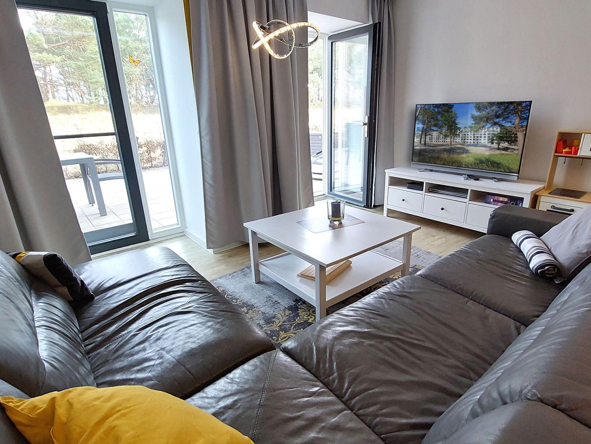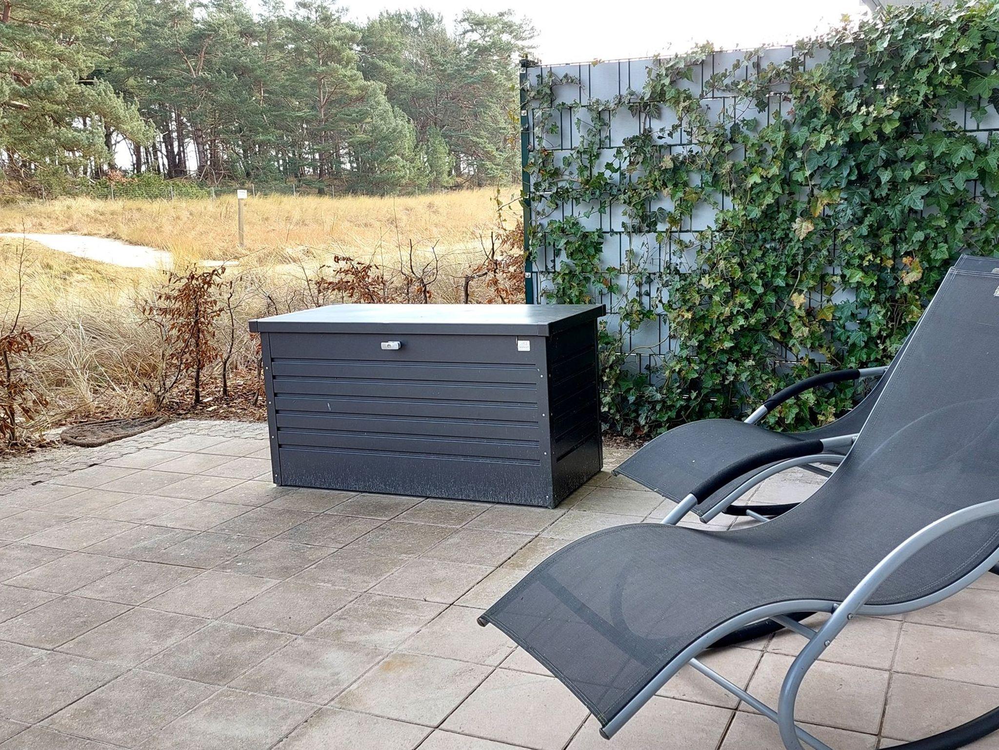 Highlight ist die große möblierte Terrasse Richtung Ostseedünen, welche sowohl vom Wohn-, Schlaf- und einem der Kinderzimmer betretbar ist. Es gibt dort ausreichend Sitzgelegenheiten, 2 Sonnenliegen und die Möglichkeit quasi barfuß zum Strand zu gehen.