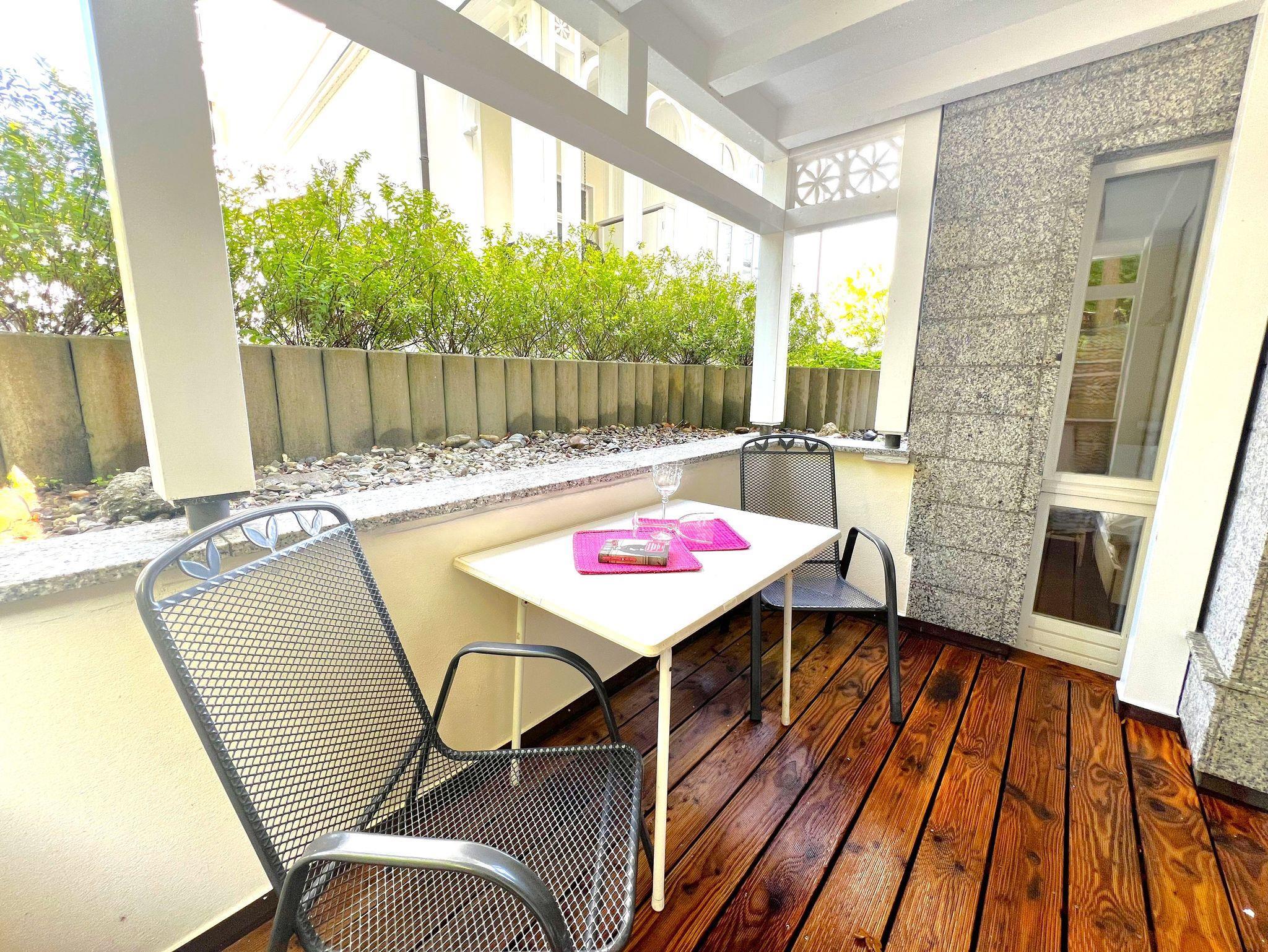 Eine kleine, private Terrasse lädt zum Verweilen ein und bietet einen schönen Platz zum Frühstücken oder Entspannen. Zur Wohnung gehört ein eigener Parkplatz.