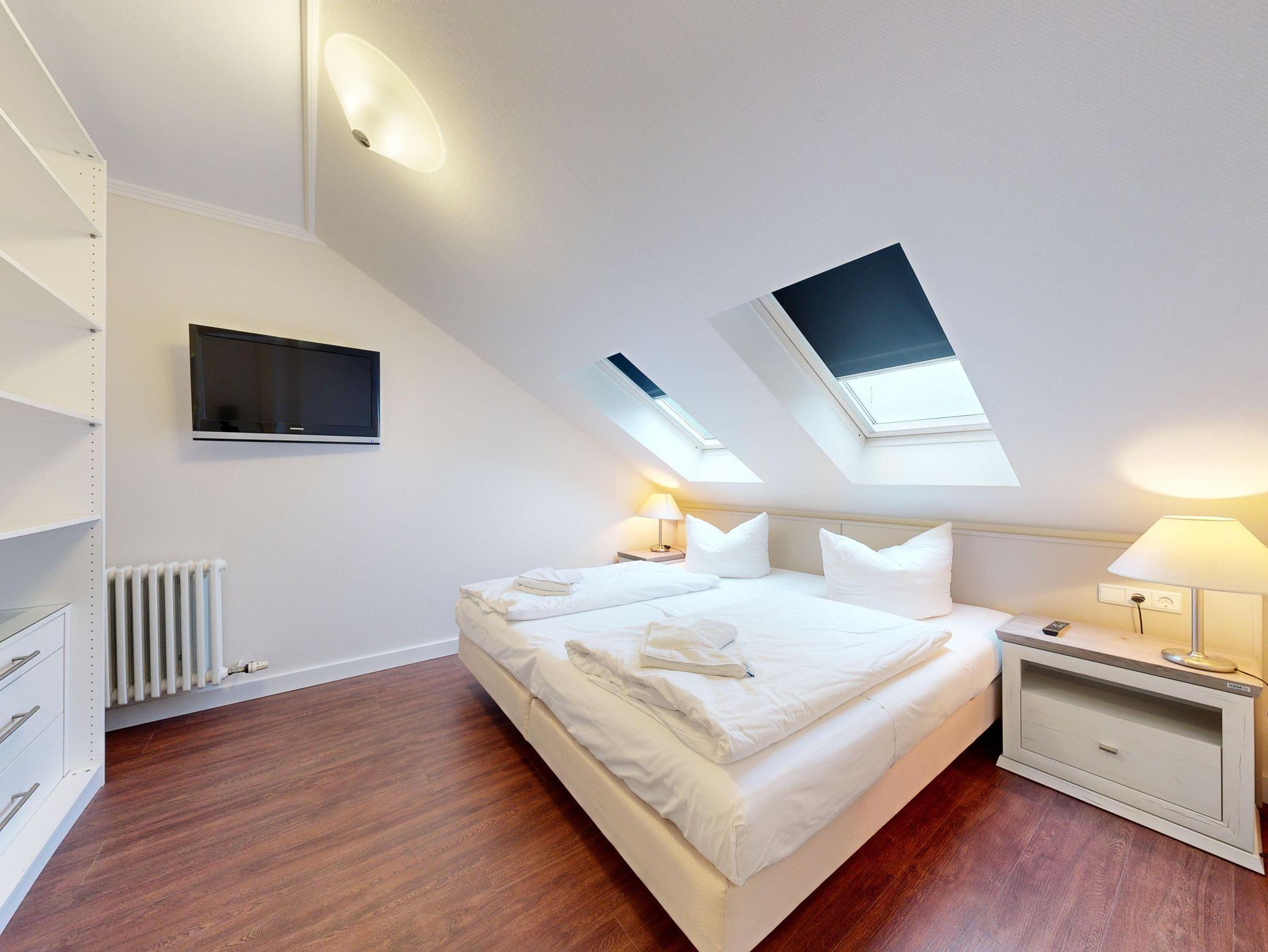 Im Dünenpark Binz befindet sich im Haus 9 die großzügige Komfort-Ferienwohnung im Dachgeschoss (2 Zimmer / 52 m²) mit 1 Schlafzimmer, einer Schlafcouch und Balkon