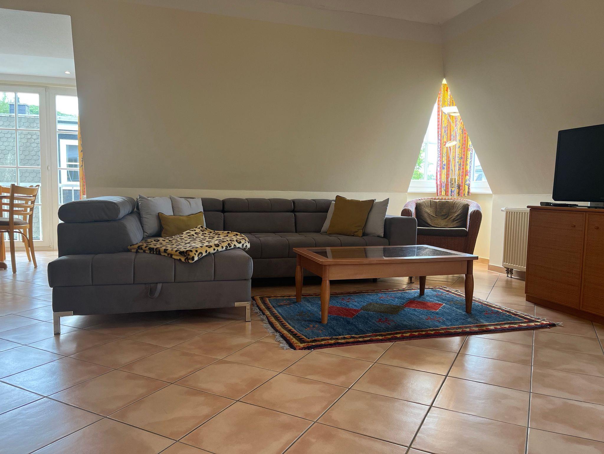 Diese Zweiraumwohnung im Dachgeschoß verfügt über ein großes Wohnzimmer mit integrierter Küchenzeile, moderner Eckschlafcouch und einem Eßbereich, hier lassen sich 2 große Flügeltüren ( kein Balkon) öffnen. Das Schlafzimmer ist mit einem bequemen Boxspringbett 180x200 mit durchgängiger Matratze ausgestattet und im Bad finden Sie eine Du/ WC und Waschtisch.