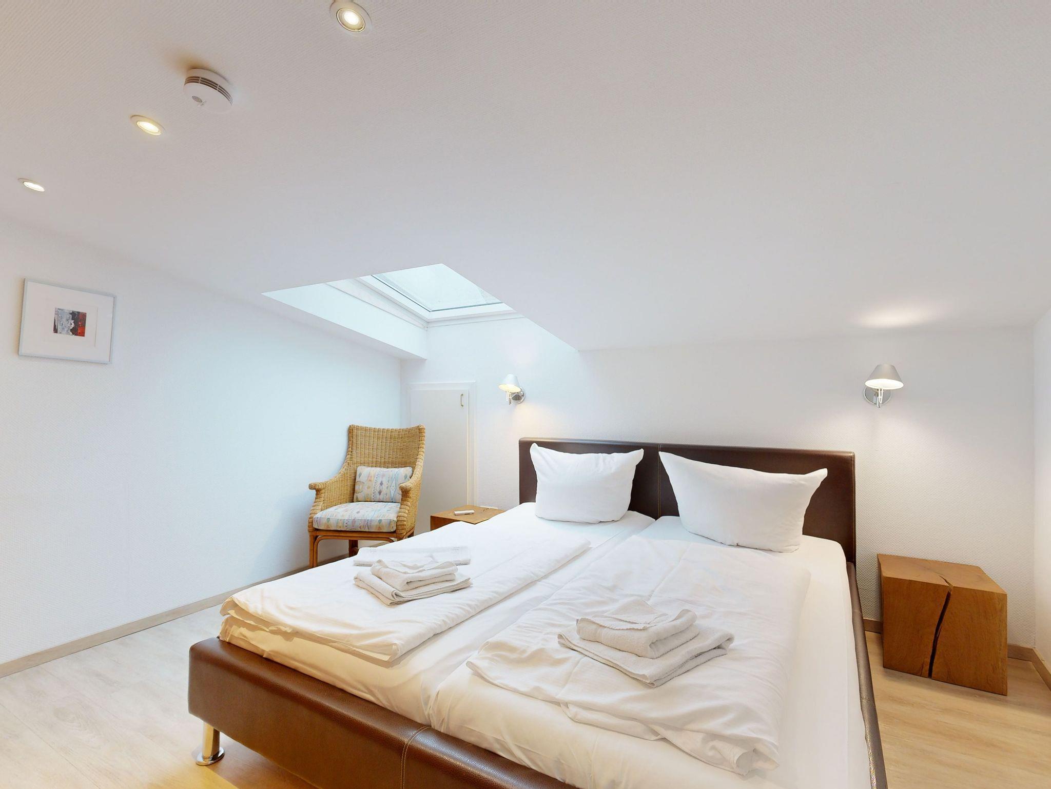 * 1 Schlafzimmer mit einem Doppelbett und großem Kleiderschrank, Dachschrägen