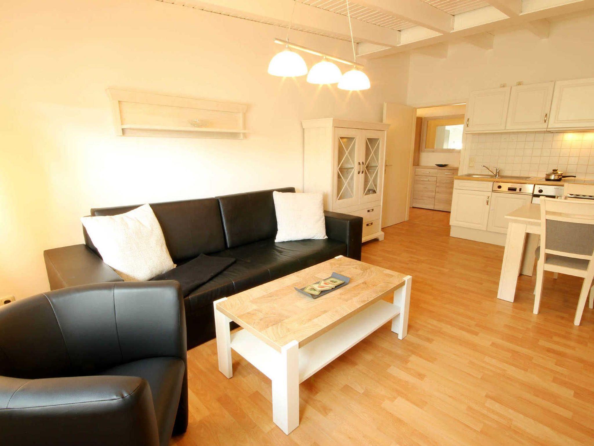 Ihre attraktive und großzügige 2-Zimmerwohnung 23RB38 mit wohnungseigenen Strandkorb (Mai-Sept. 2025) hat eine Größe von ca. 50 qm und ist für 4 Personen eingerichtet. Die Nichtraucherwohnung befindet sich im 3. Obergeschoss des Hauses. Dem hellen Wohnraum schließt sich die weiße Wohnküche und der Essbereich an. Im separaten und geräumigen Schlafraum finden Sie ein modernes Doppelbett, einen Kleiderschrank sowie einen großen Flachbild-TV. Vom vorgelagerten Flur aus erreichen Sie das Badezimmer mit Waschtisch, Dusche, Wanne, WC und Fön. Im Wohnraum gibt es eine gemütliche Sitzecke mit Schlaffunktion, WLAN sowie einen weiteren Flachbildfernseher. Die Küche verfügt über einen Backofen, eine Mikrowelle, Kühlschrank, Geschirrspüler, Kaffeemaschine, Toaster und Wasserkocher. Haustiere sind herzlich willkommen! Ein PKW-Stellplatz steht Ihnen auf dem Parkplatz Zentrum (ca. 8 Gehminuten) zur Verfügung.