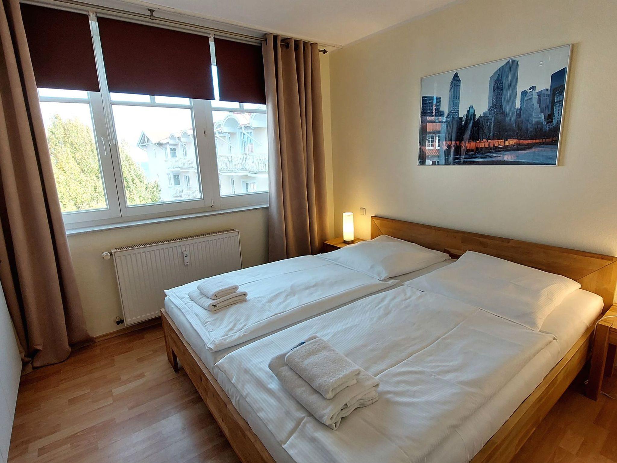 Im 2. Obergeschoss befindet sich das Hauptschlafzimmer, die Küche mit Essplatz und Zugang zum Balkon in Richtung Ostsee sowie das Badezimmer mit Waschtisch, Dusche, WC und Fön. Im separaten Schlafraum finden Sie ein Doppelbett und einen Kleiderschrank. Die Küchenzeile ist mit Cerankochfeld, Backofen, Geschirrspüler, Mikrowelle und diversen Kleingeräten komplett ausgestattet. Die Verbindung zwischen dem 2. und dem 3. Obergeschoss schafft eine geräumige Wendeltreppe. Das gemütliche Wohnzimmer sowie das weitere Schlafzimmer befinden sich im 3. Obergeschoss und erstrecken sich über die gesamte Breite des Hauses. Hier befindet sich eine gemütliche Sitzgruppe mit Schlaffunktion, ein Flachbildfernseher, DVD-Player (samt Filmauswahl) und ein kostenfreier WLAN-Zugang sowie eine Wohngalerie mit einem schönen Blick auf die Promenade und die Ostsee. Der zweite Schlafbereich ist mit zwei Einzelbetten ausgestattet. Hier haben Sie den Zugang zur sonnigen Dachterrasse in Richtung Süden.