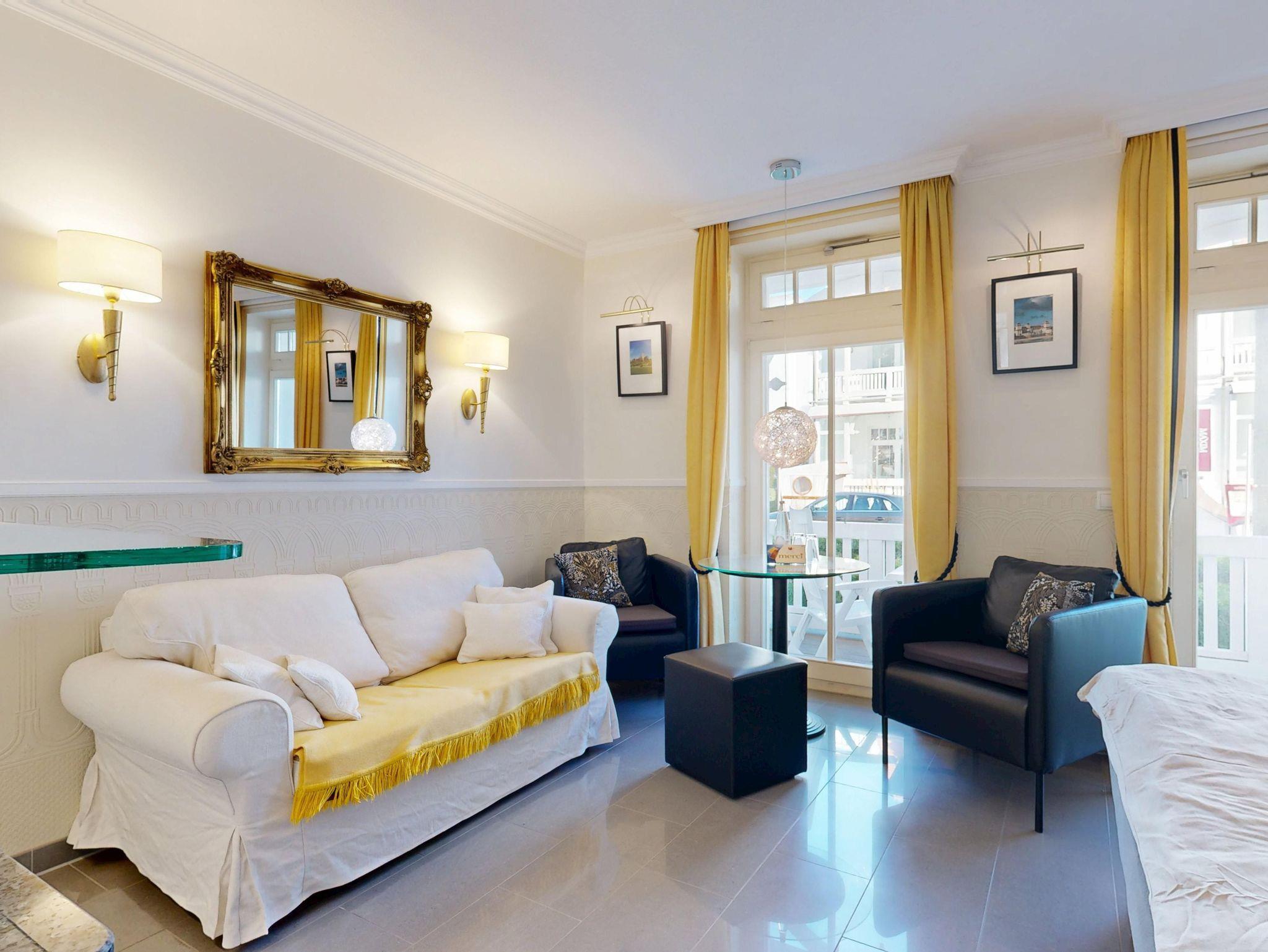 Die schöne Villa Jugendglück 04 ist eine moderne 1-Raum-Wohnung (29 m²) im Erdgeschoss mit einem Wohn-/Schlafraum und einem Balkon und Internetanschluss.