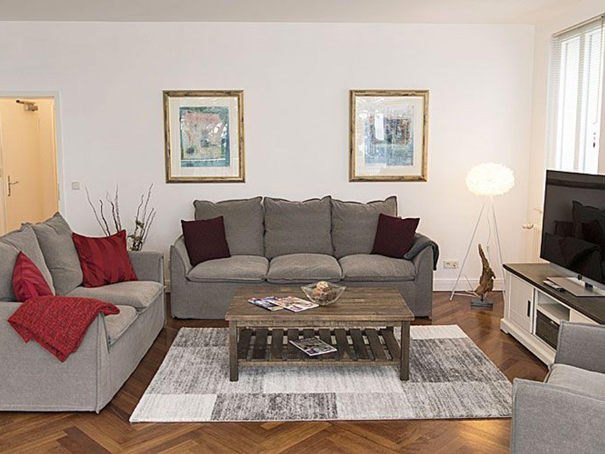 Im Wohnbereich befindet sich ein Loewe-TV mit Soundbar, ein CD-Blu-Ray-Player[nbsp]und ein kostenfreier WLAN-Zugang.
