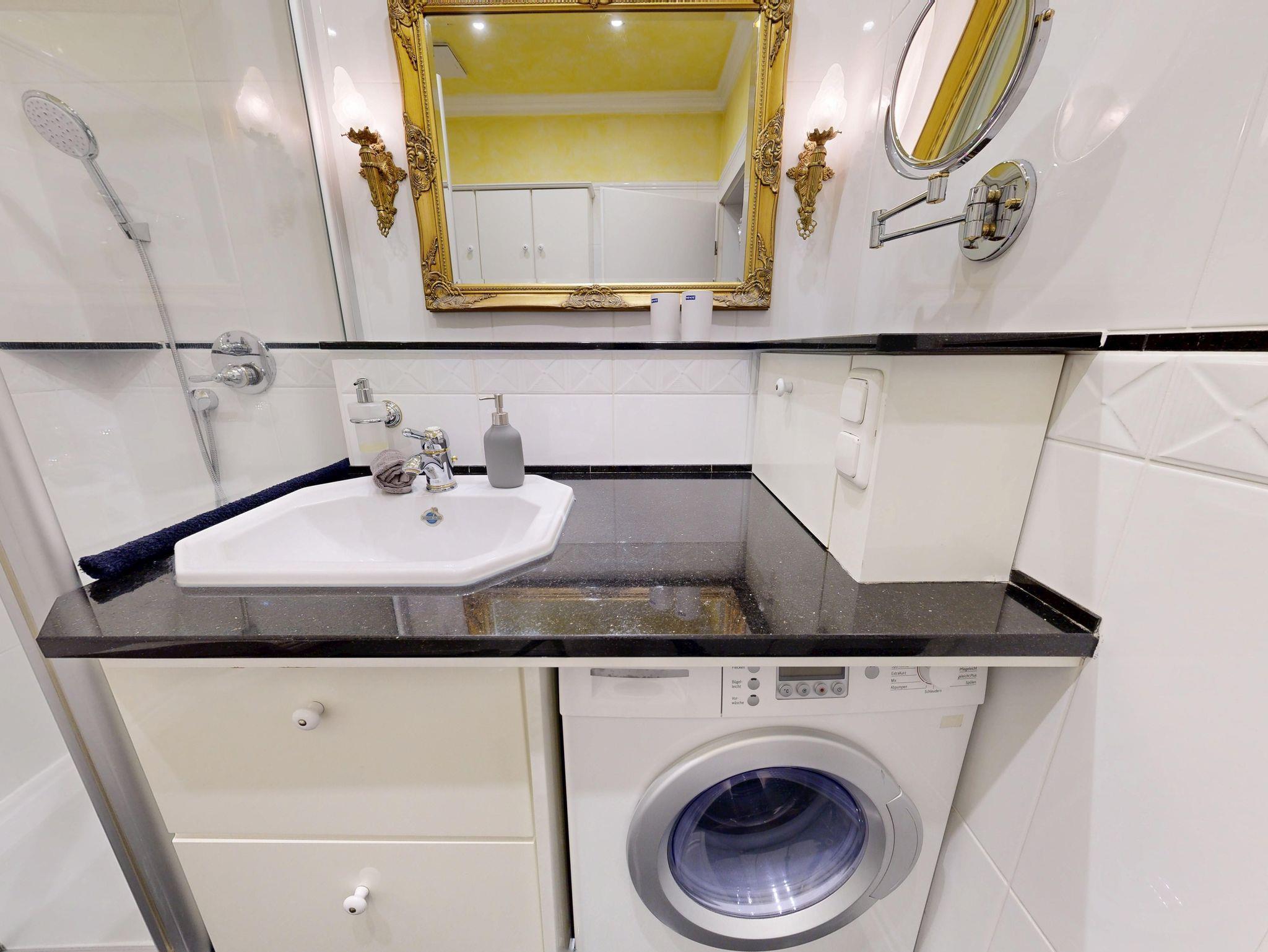 Badezimmer mit Dusche, WC, BD, Föhn und Waschmaschine